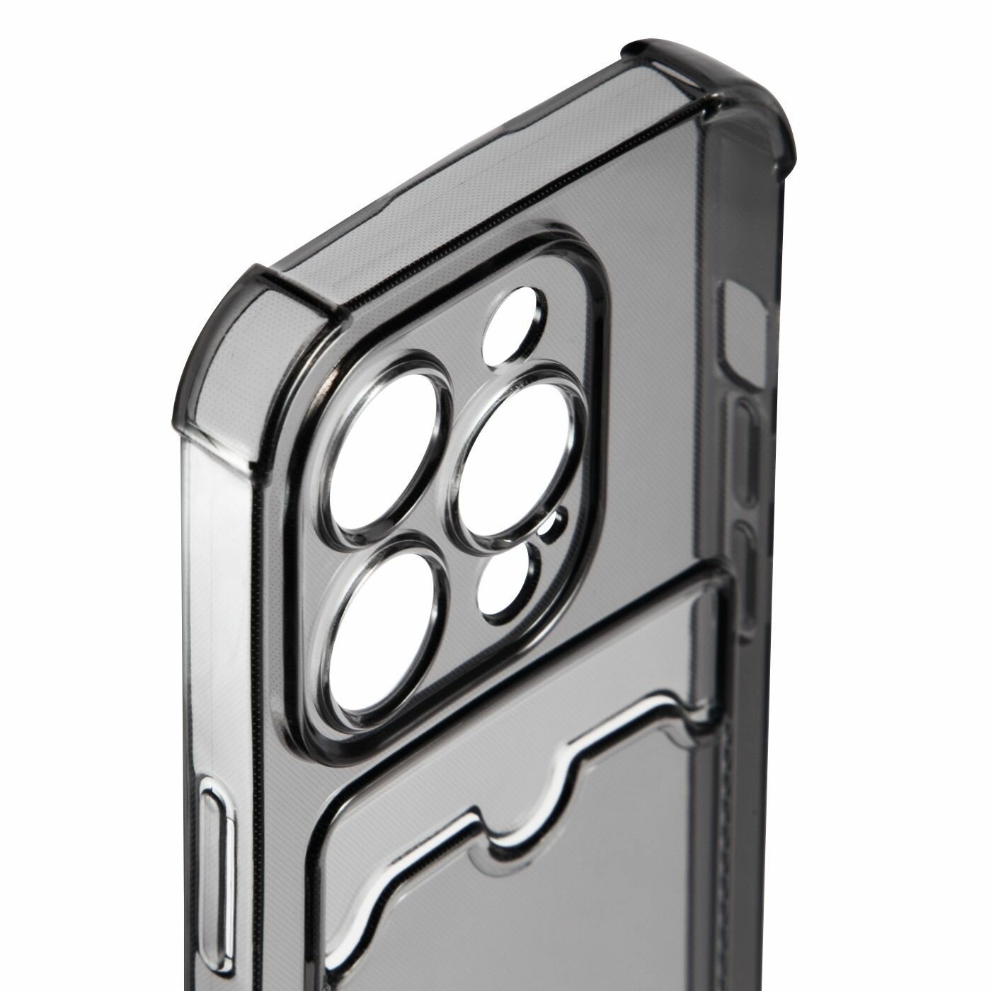 Защитный противоударный чехол с картхолдером для Iphone 15 pro / Айфон 15 про с кармашком для карт. Противоударный силиконовый чехол с усиленными углами – это идеальный выбор для тех, кто хочет надежной защиты и удобства использования своего устройства.Он обеспечивает защиту от царапин, ударов и падений, благодаря чему ваш смартфон будет всегда в безопасности.Главная особенность прозрачного чехла – усиленные углы и место для карт: благодаря усиленным углам, чехол принимает весь удар на себя, надежно сохраняя камеру и экран, а место для карт обеспечит хранение Вашего проездного, студенческой карты, пропуска или банковской карты.Модель спроектирована таким образом, что при падении все главные части смартфона будут защищены.Чехол имеет элегантный дизайн, а благодаря прозрачности практически незаметен на панели. Это отличный выбор тех, кто хочет защитить свой гаджет от повреждений, не скрывая при этом красивую панель.Силиконовый чехол тонкий и достаточно гибкий: он легко надевается, а за счет качественного материала плотно сидит на смартфоне.На чехле расположены технологические вырезы для легкого доступа ко всем портам и функциям, точно соответствующие модели вашего смартфона, что делает его очень удобным в использовании.Благодаря им, вы легко сможете пользоваться камерой, отпечатком пальца или регулировать звук.Тонкий прозрачный чехол приятно держать в руках, он не скользит в ладонях, и не нарушает геометрию смартфона, выгодно подчеркивая его стиль, и надежно защищая от повреждений. С его помощью вы сможете не только продлить жизнь вашего смартфона, но и сохранить его в отличном состоянии на долгое время.