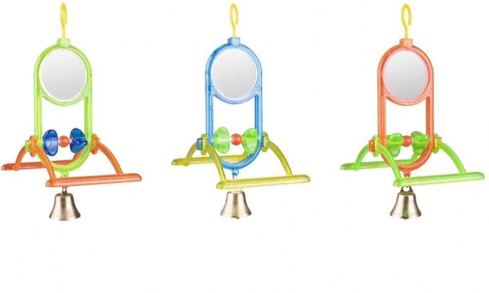 Игрушки необходимы для птиц, которые большую часть времени проводят в клетке. Игрушки развлекают птиц во время отсутствия хозяев, с помощью веселой игрушки птичке всегда будет чем заняться и весело провести время. В этой игрушке есть все необходимое для веселого досуга – зеркало, колокольчик и жердочка отлично подойдут для веселых игр.
