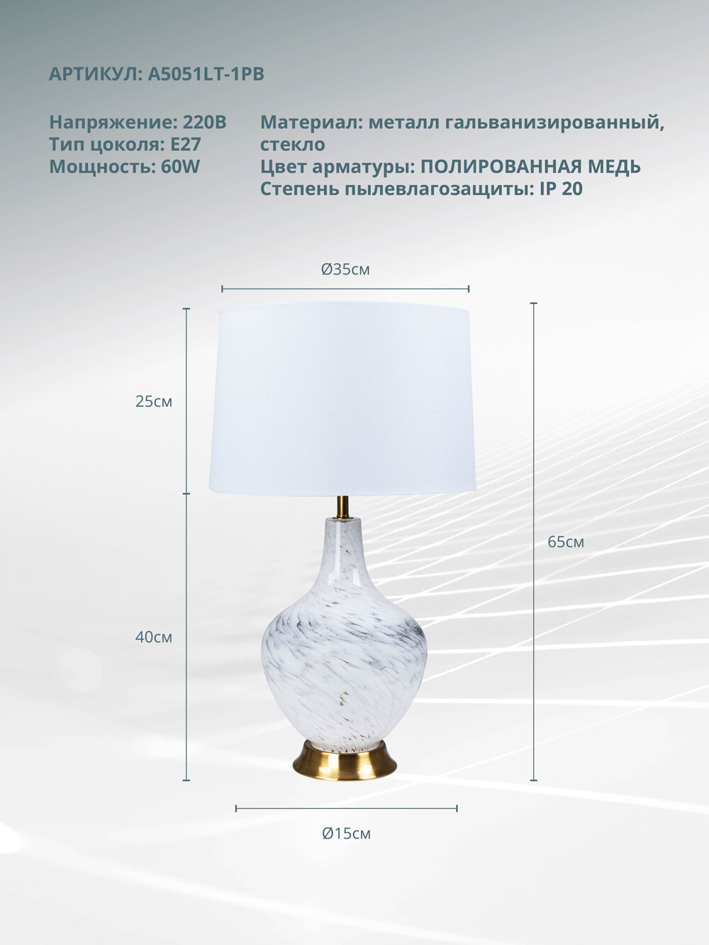 Декоративная настольная лампа Arte Lamp A5051LT-1PB серии SAIPH Неоклассика. Подчеркнет стиль помещения. Высота 65 cm. Диаметр 38 cm Параметры пылевлагозащиты IP — 20. Форма декоративная. Плафон текстильный бежевый, а материал/цвет арматуры металл/медный. Использует лампу с цоколем E27. Площадь освещения охватывает 3 m?. Идеально подходит для гостиной или спальни. Страна происхождения бренда — ИТАЛИЯ. Вес с упаковкой 3.8 kg Гарантия 12 мес. Напряжение: 220V. Максимальная мощность лампы: 60W. Лампы в комплект не входят.