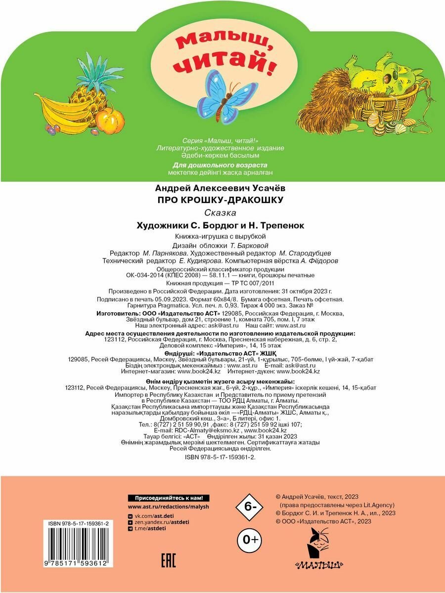 На сегодняшний день товар «Книга: Про крошку-Дракошку (Усачев Андрей Алексеевич); ИЗДАТЕЛЬСТВО "АСТ", 2023» можно купить с кешбеком в 2 магазинах: book24, Буквоед