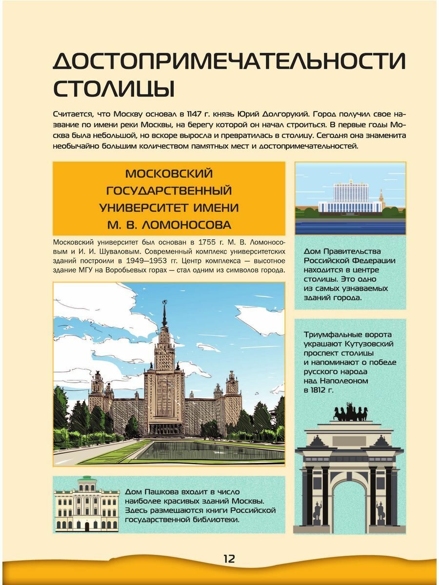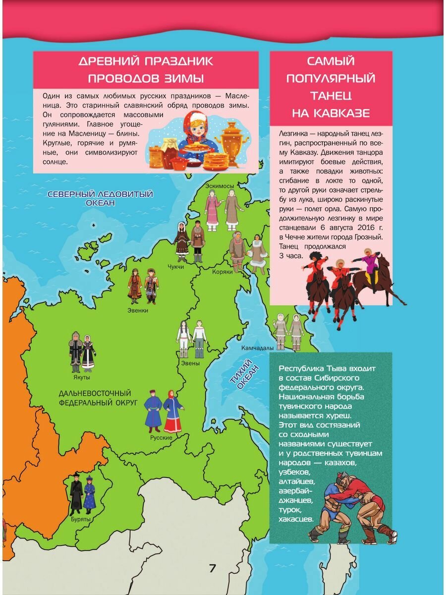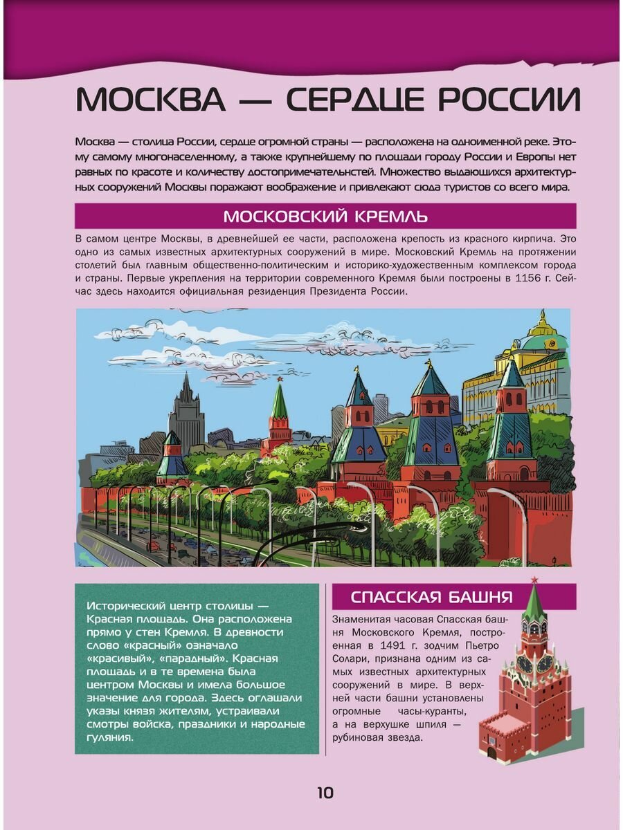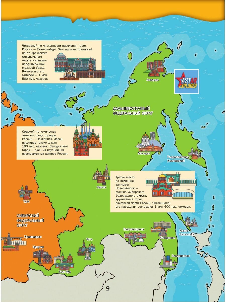 Большой 4D-атлас станет вашим гидом в увлекательном путешествии по России. Он расскажет о республиках, краях и областях Российской Федерации, ее крупнейших мегаполисах, таких как столица нашей Родины Москва, главный культурный центр Санкт-Петербург, самый большой город Сибири Новосибирск, краса и гордость Татарстана Казань и многих других. Здесь же содержится интересная информация о городах поменьше, входящих в список «Золотое кольцо России», а также древних селениях, ставших музеями под открытым небом. Вы сможете лучше изучить географию нашей страны, ее растительный и животный мир, природные богатства, достижения науки и техники. Важные сведения и любопытные факты в этой книге приведены в сопровождении огромного количества зрелищных иллюстраций, позволяющих позна- комиться с величественными православными храмами и мусульманскими мечетями, великолепными дворцами, неприступными средневековыми башнями и боевыми крепостями, самыми протяженными мостами и грандиозными дамбами, загадочными дольменами и мистическими скальными образованиями, таинственными пещерами и огнедышащими вулканами, высочайшими горными пиками и красивейшими водопадами, удивительными обитателями живой природы и впечатляющими образцами отечественной техники. Но главное - использование новейших 4D-технологий позволит рассмотреть многочисленные природные, культурные и исторические достопримечательности нашей страны со всех сторон, в цвете и объеме, а познавательные сообщения о них прослушать в звукозаписи. Для этого вам нужно будет лишь скачать бесплатное приложение ASTAR EXPLORER и действовать согласно несложной инструкции.