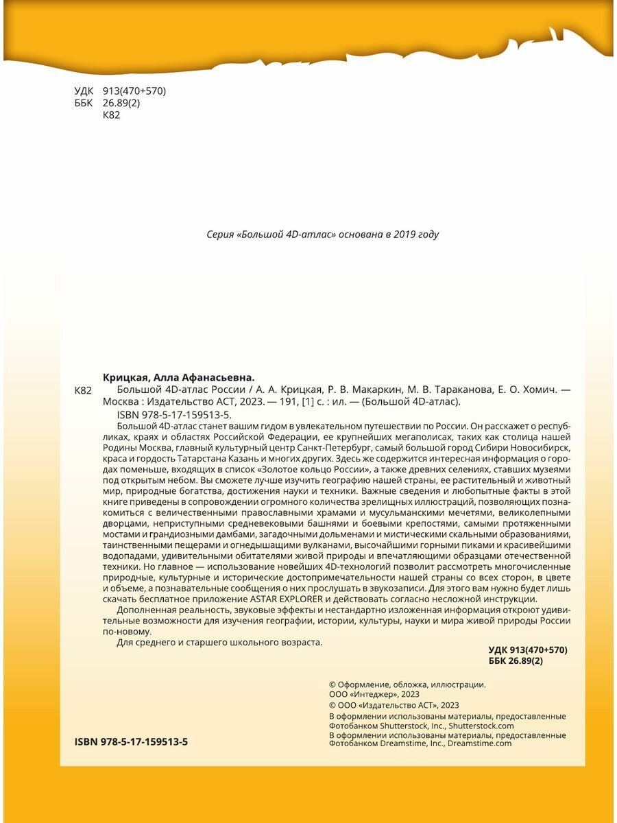 Книга: Большой 4D-атлас России (Хомич Елена Олеговна, Тараканова Марина Владимировна, Макаркин Ростислав Вячеславович, Крицкая Алла Афанасьевна); ИЗДАТЕЛЬСТВО "АСТ", 2023