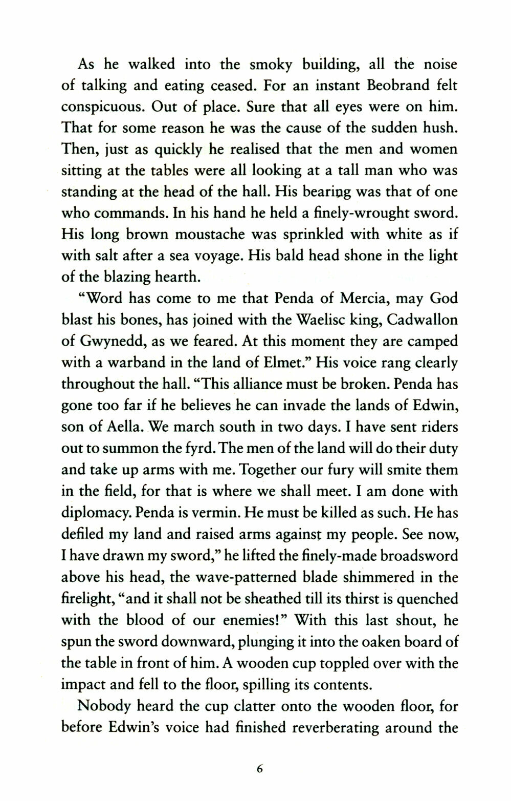 Beobrand is a young man with a shadowy past. As an outsider in the kingdom of Bernicia, he is compelled to join his brother, Octa, as a warrior in the household of King Edwin. He must learn to fight with sword and shield to defend the war-ravaged kingdoms of Northumbria.