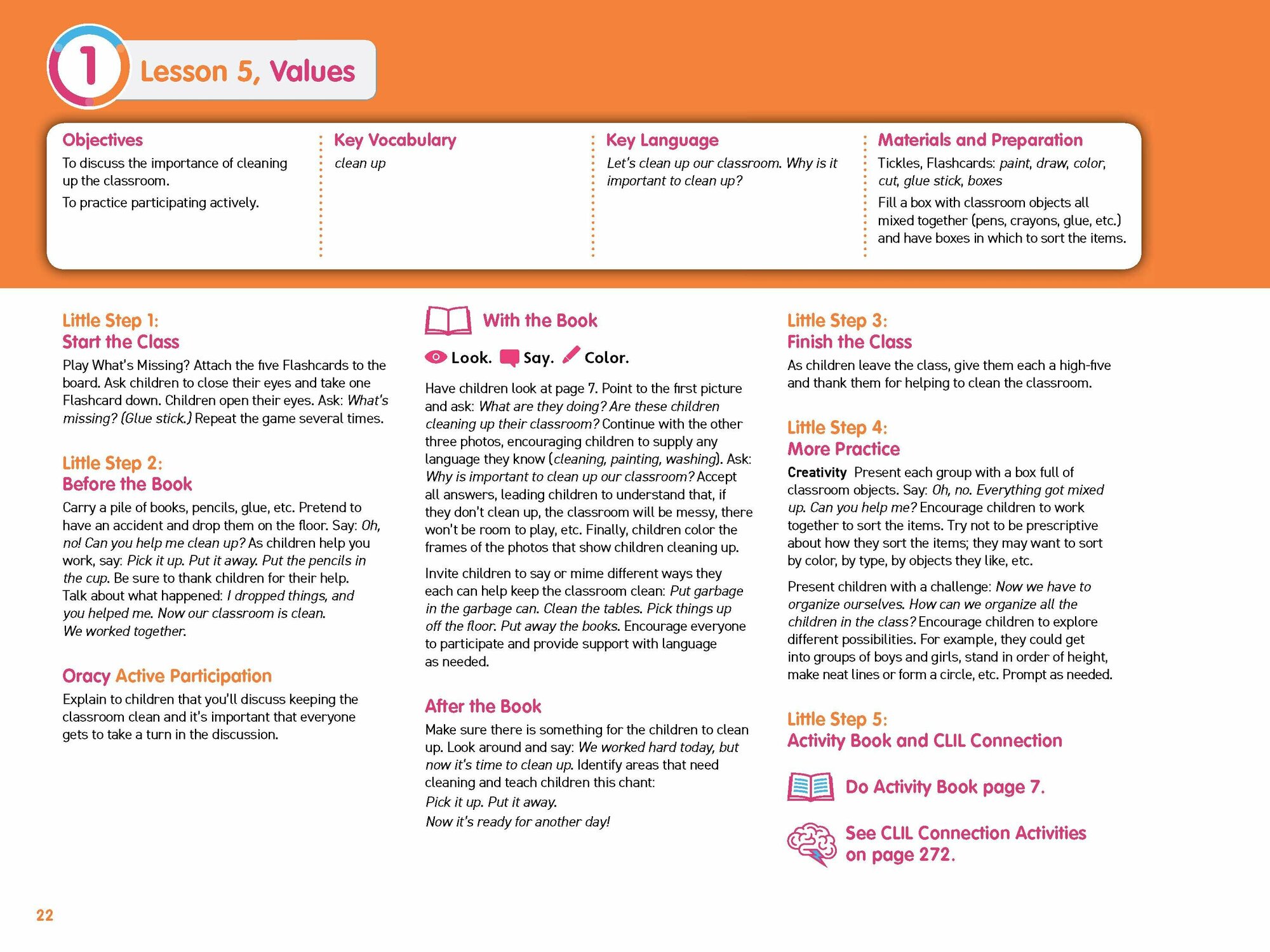 Step into the world of Cambridge Little Steps, a language and early literacy course that gets very young children communicating in English while nurturing their key life competencies and human values needed to become kind, creative individuals ready to make the most of life's opportunities. Explore: beautiful stories that develop rich, natural vocabulary along with emotional competencies and values; Big Questions that encourage children to investigate real-life topics from different angles; support for early literacy and basic math skills; playful activities and class projects that promote collaboration and turn learning into fun!