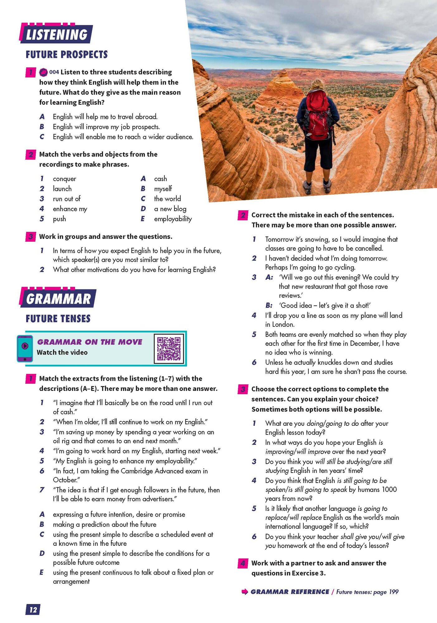 Уникальное прохождение экзамена на протяжении всего курса максимально повышает успеваемость студентов: задания для подготовки к экзамену укрепляют уверенность учащихся в своих навыках, позволяя им перейти к полноценной практике выполнения заданий в рамках экзамена. Разделы "Real World" расширяют знания о языке и знакомят с распространенными, но удивительными выражениями, в то время как мобильная анимация "Grammar on the Move" стимулирует обучение вне класса. Дополнительные разделы "Push Yourself" расширяют возможности и уверенность учащихся до уровня владения языком C2.