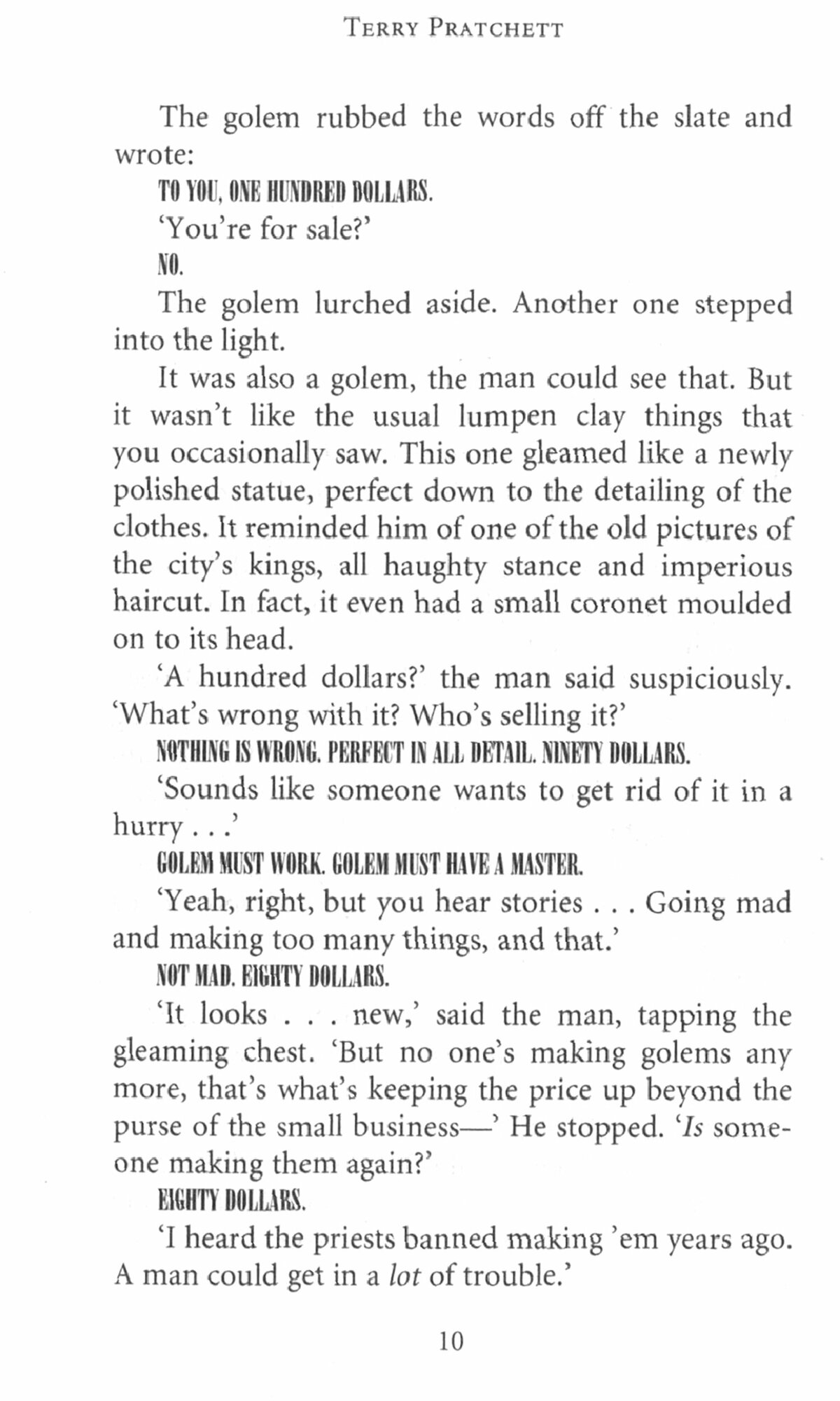It's a conundrum of a case. With the help of Captain Carrot, the only watchman who knows the law inside-out; Corporal Cheery Littlebottom, an unconventional dwarf with an eye for forensics; and Constable Angua, a werewolf with an excellent sense of smell, Vimes tries to solve the mystery.