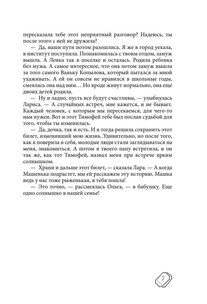 Яна Нененко – писательница, покорившая сердца читателей интересными рассказами, сюжеты для которых ей подбрасывает сама жизнь. Является автором популярного Дзен-канала «Живу, люблю, пишу…», в котором уже больше 100 тысяч неравнодушных читателей. «Счастливый билет. О семейных секретах и силе желаний» - это сборник историй, которые с первого слова окутывают теплом, уютом и добротой. Благодаря этой книге вы узнаете: - почему девушка требует отдать ей чужого мужа; - как пирог смог соединить две судьбы; - почему купленный билет на поезд называют счастливым; Эти рассказы помогут поднять вам настроение даже в самый ненастный день и напомнят, что счастье рядом, просто нужно научиться видеть его в повседневности.