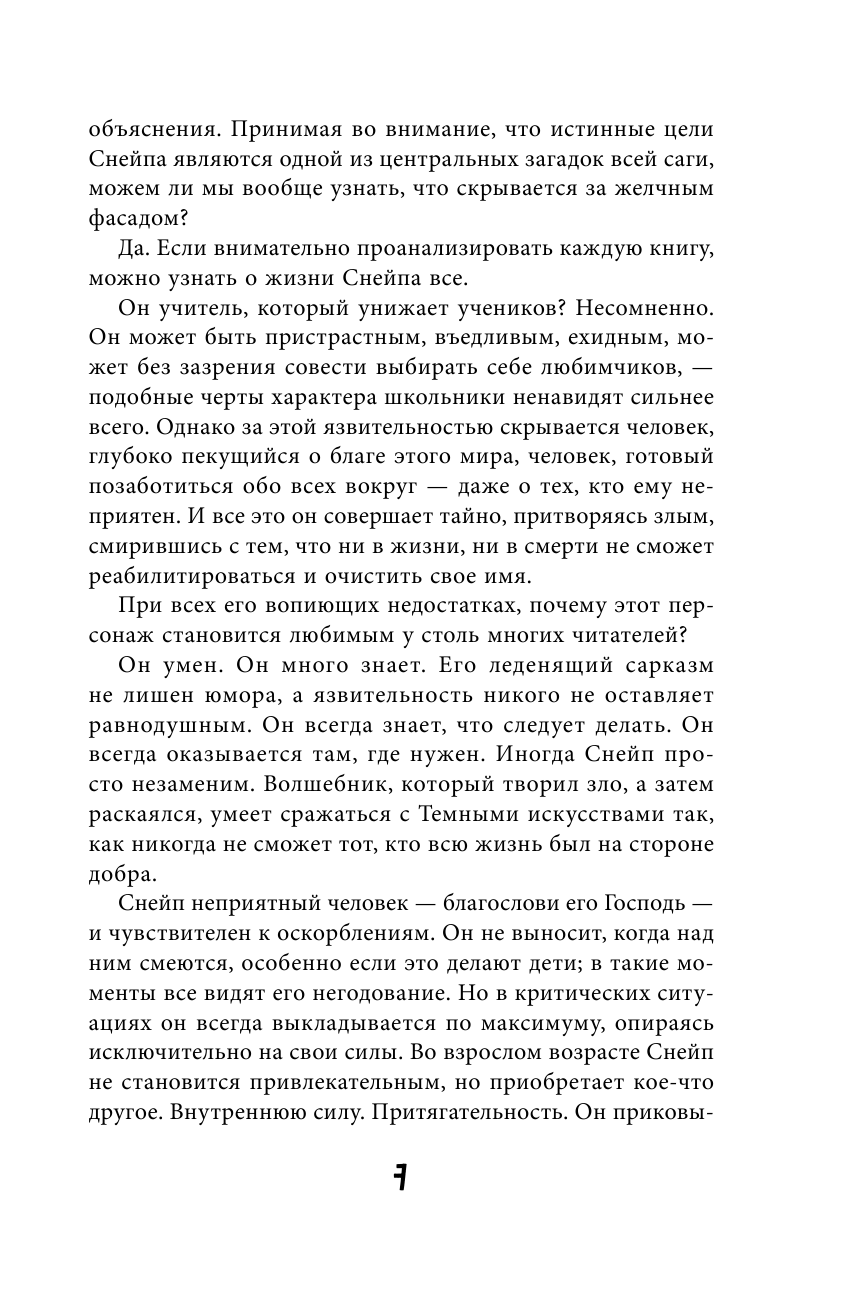 Северус Снейп – один из самых ярких, неоднозначных и загадочных персонажей в "Гарри Поттере". Эта книга подарит уникальную возможность взглянуть на Северуса Снейпа иными глазами. Лучше понять его жизнь, полную трудностей и лишений, а что еще важнее – мотивы его поступков. Никто не знает каких сил стоило Снейпу на протяжении всей саги оставаться правой рукой Дамболдора и Волан-де-Морта одновременно. И кто же на самом деле скрывается за непривлекательной внешностью язвительного и строгого учителя Зельеварения в чёрной мантии? Жизнь и смерть Северуса Снейпа без купюр.