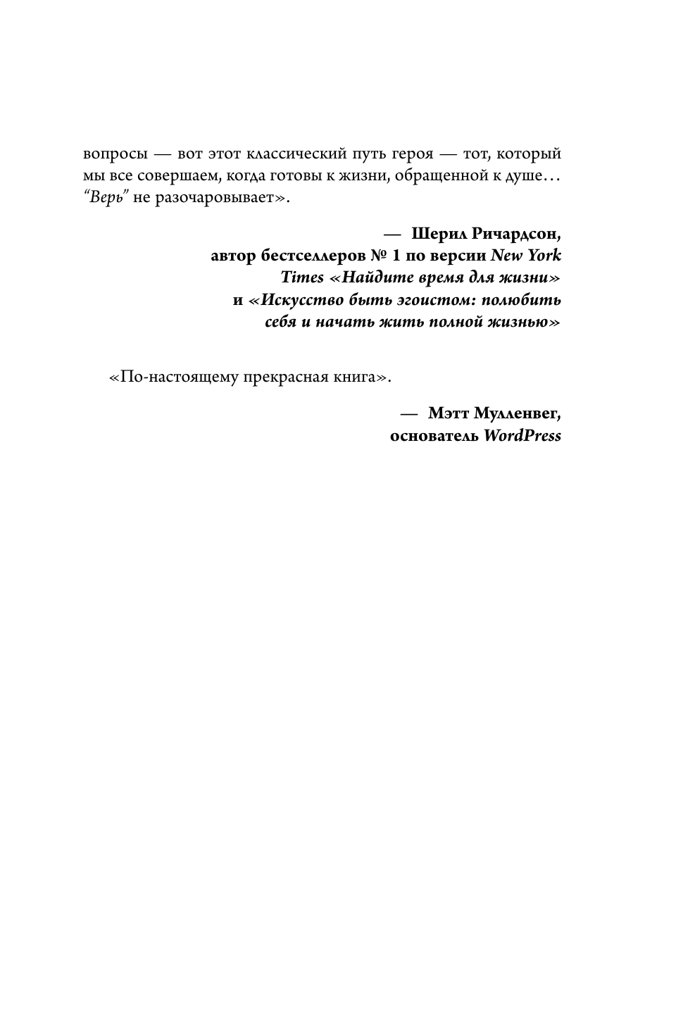 «Верь» — это не просто книга. Это поиск себя через магическое странствие, которое помогает оставить позади страхи, привычки, идеалы. Все то, что придумано не вами, но взято на веру исполнения.