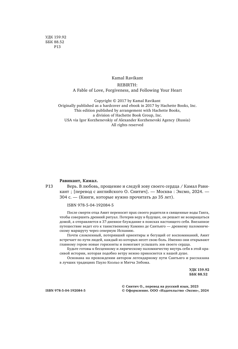 ВЕРЬ. В сказку о любви прощении и о том как следовать зову своего сердца (Равикант Камал); ООО "Издательство "Эксмо", 2023