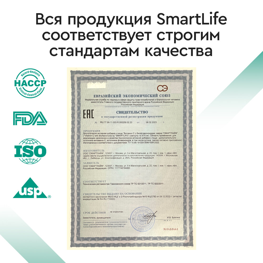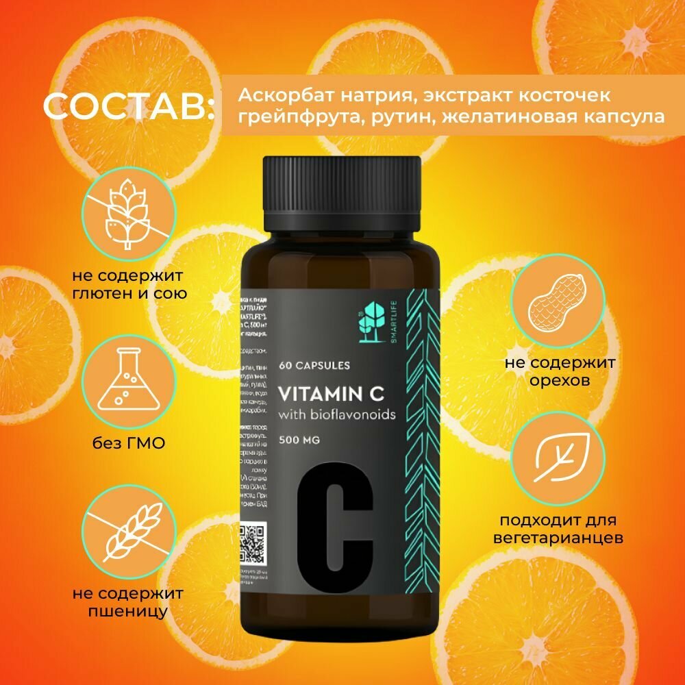 Витамин С с биофлавоноидами Smartlife/Смартлайф капсулы фл. 60шт ООО СМАРТЛАЙФ (2661246)