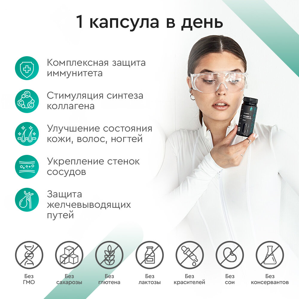 Витамин С с биофлавоноидами нужен для укрепления стенок сосудов, комплексной защиты иммунитета, стимуляции синтеза коллагена, улучшения состояния волос, ногтей и кожи.