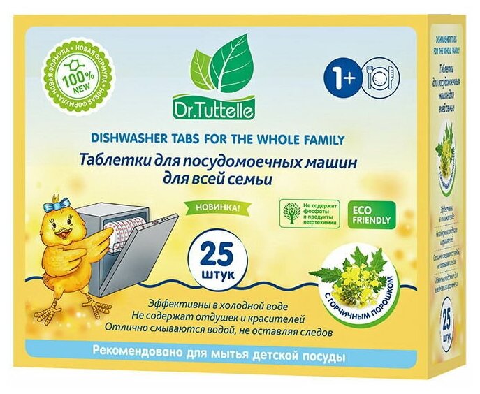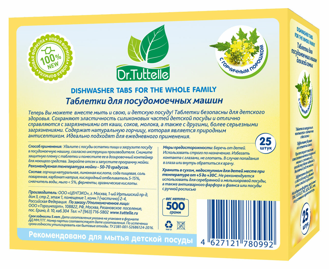 Dr.Tuttelle Таблетки для посудомоечных машин для всей семьи 25 шт. рекомендуются для мытья детской и среднезагрязненной посуды в посудомоечной машине. Особенности: