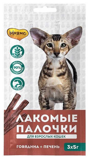 Мнямс лакомые палочки 135 см для кошек с говядиной и печенью 3х5 г