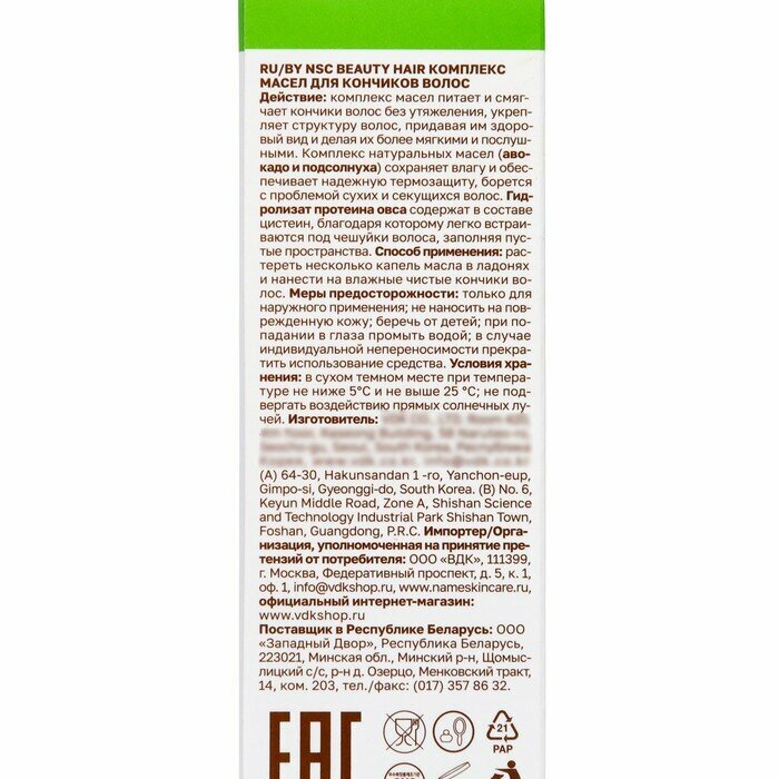 NAME SKIN CARE Комплекс масел для кончиков волос / NSC BEAUTY HAIR 50 мл (8804170414344)