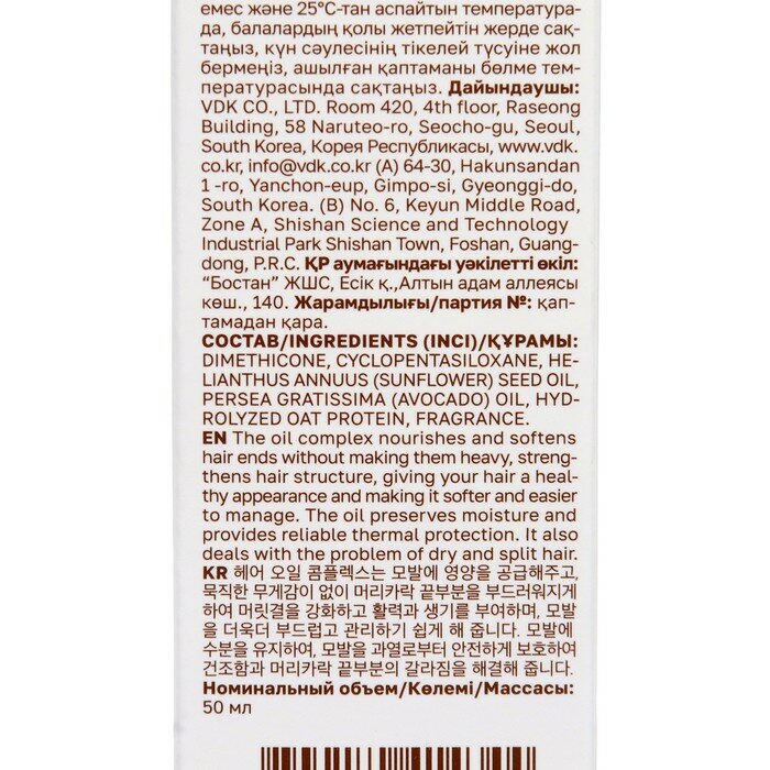 | Состав | Dimethicone, Cyclopentasiloxane, Sunflower Seed Oil, Avocado Oil, Hydrolyzed Oat Protein, Fragrance |
