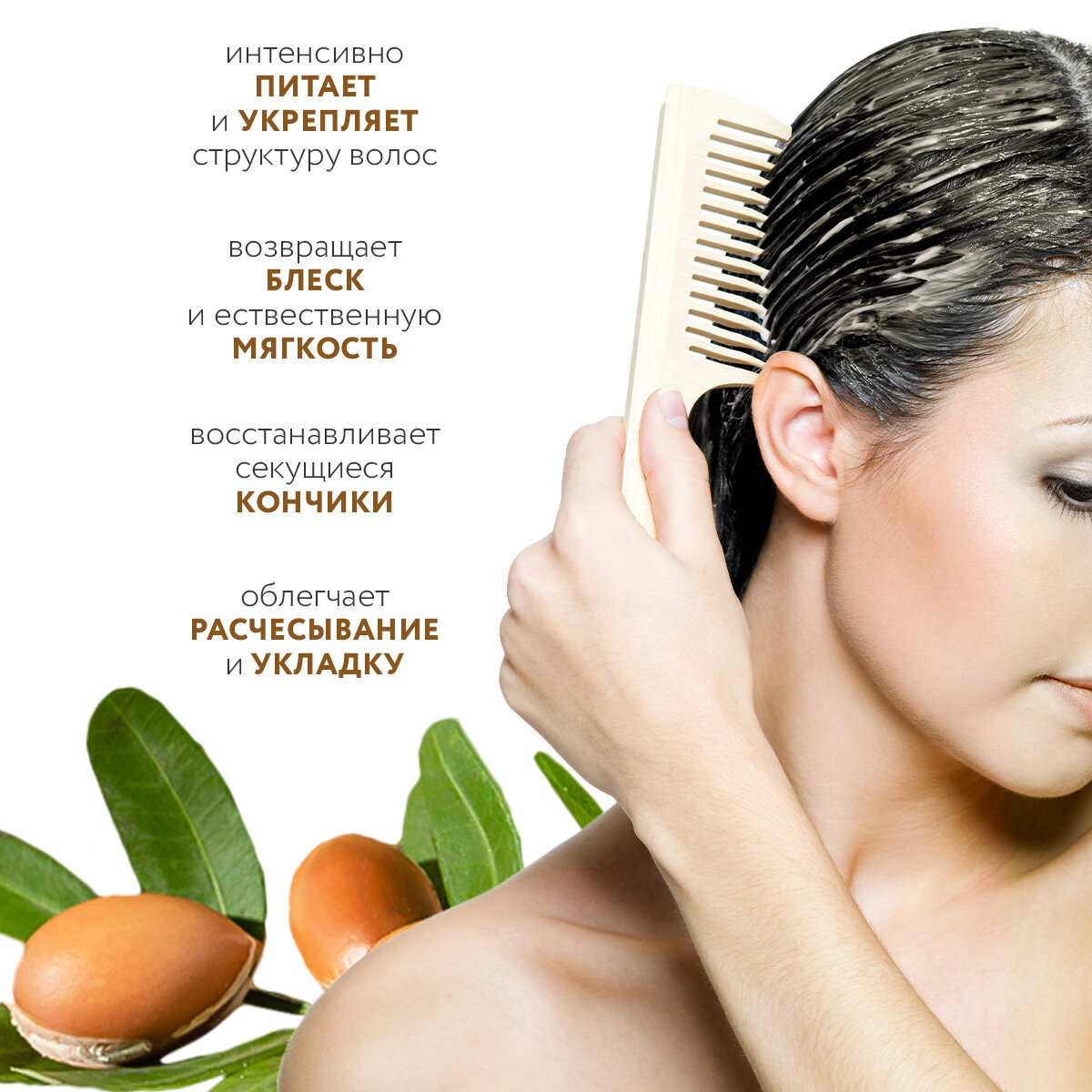 Маска для хрупких, сухих и непослушных волос придает им мягкость и гладкость, интенсивно питает и облегчает расчесывание. Масло арганы питает, укрепляет волосы, придаёт им блеск и естественную мягкость. Масло ростков пшеницы богато витаминами А, Е, F, группы В. Оказывает смягчающее, регенерирующее, питающее действие, помогает сухим волосам, не дают сечься и придают им блеск. Экстракт имбиря придает волосам энергию и жизненную силу. В состав маски входит гиалуроновая кислота - увлажняющий компонент, который насыщает максимальным количеством влаги, укрепляет структуру волосяного стержня изнутри, придает волосам мягкость и шелковистость.