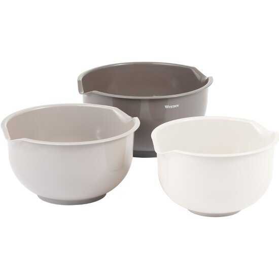Миски Werner Fresco 51213 удобны в использовании: при перемешивании емкость не будет скользить благодаря силиконовому ободу на дне, а с помощью носиков на корпусе можно аккуратно слить жидкость.