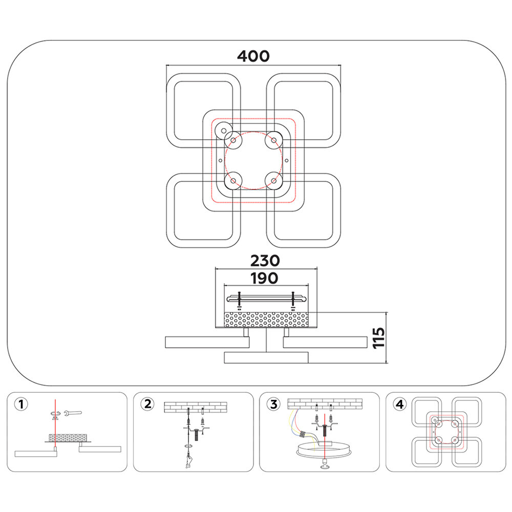 | Номенклатура | FA3861/4+1 WH белый 70W 3000K-6400K+RGB 400*400*115 (ПДУ РАДИО 2.4G) |