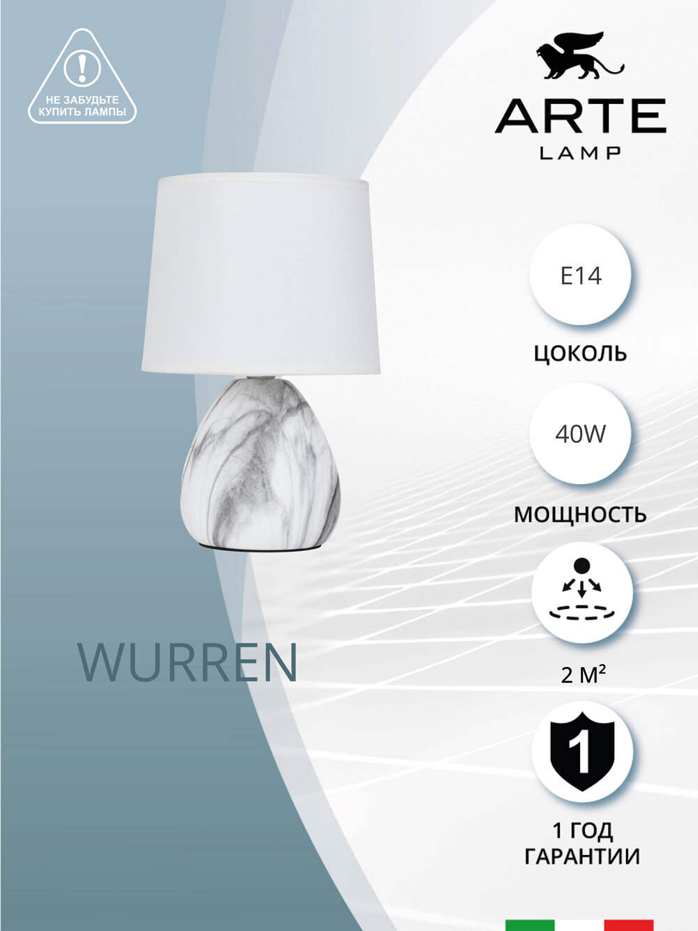 Настольная лампа Arte Lamp Wurren A5016LT-1WH