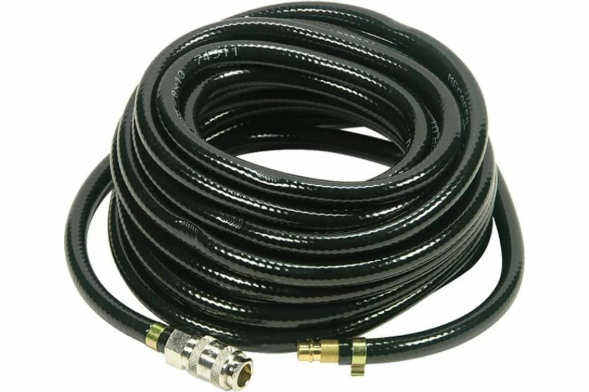 Служит удлинителем между компрессором и рабочим инструментом. Достаточная длина оснастки позволяет осуществлять работы на нужном расстоянии от компрессора. Шланг оснащен фитингами рапид.