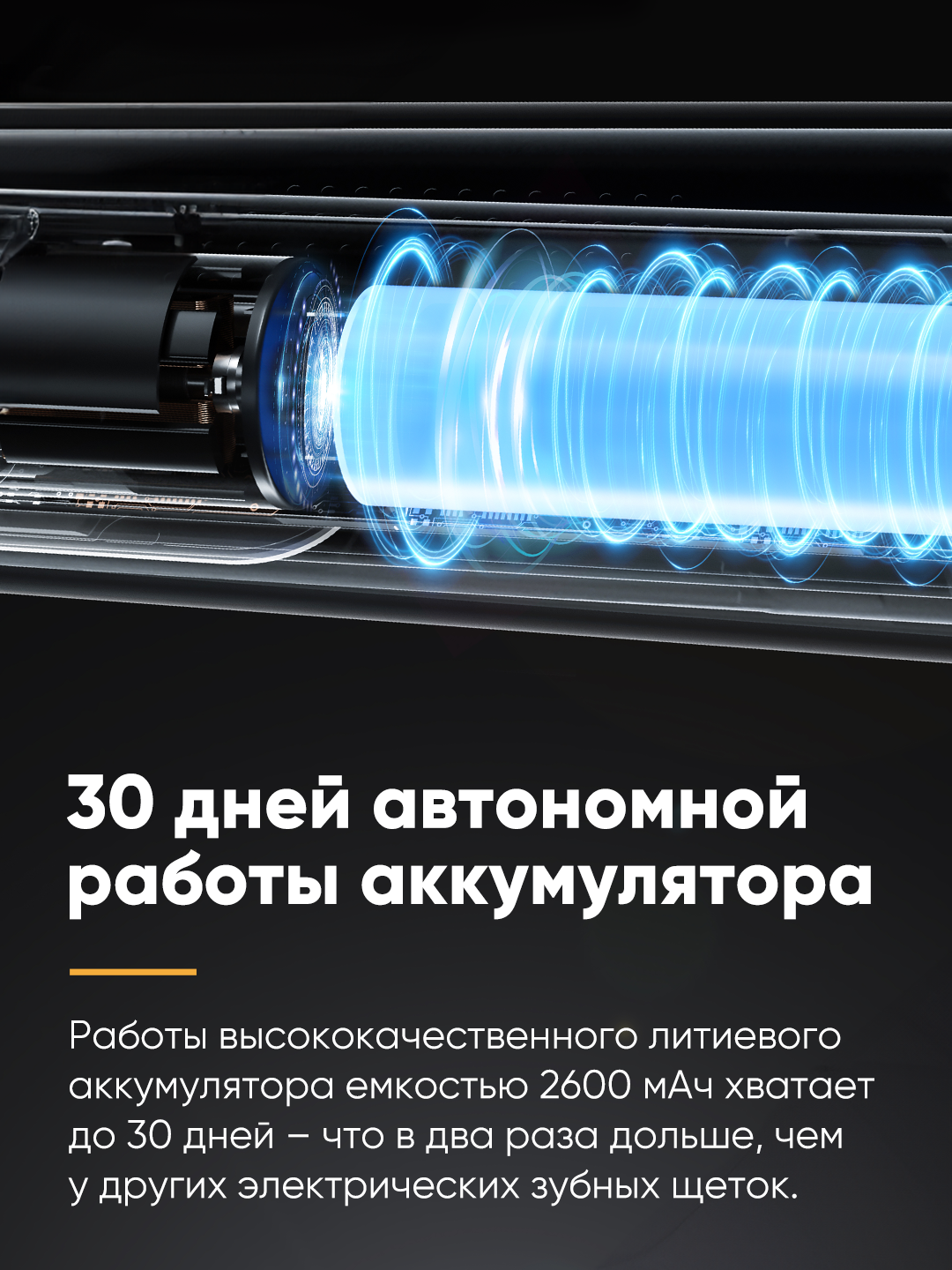 Более белые и здоровые зубы без повреждения эмали! Максимальный на настоящее время уровень водонепроницаемости IPX8 обеспечивает полную защиту от воды, используйте даже во время принятия душа! Имеет три уровня интенсивности: деликатный режим подходит для чувствительной полости рта, стандартный режим обеспечивает ежедневную чистку зубов, а сильный режим гарантирует глубокую очистку.