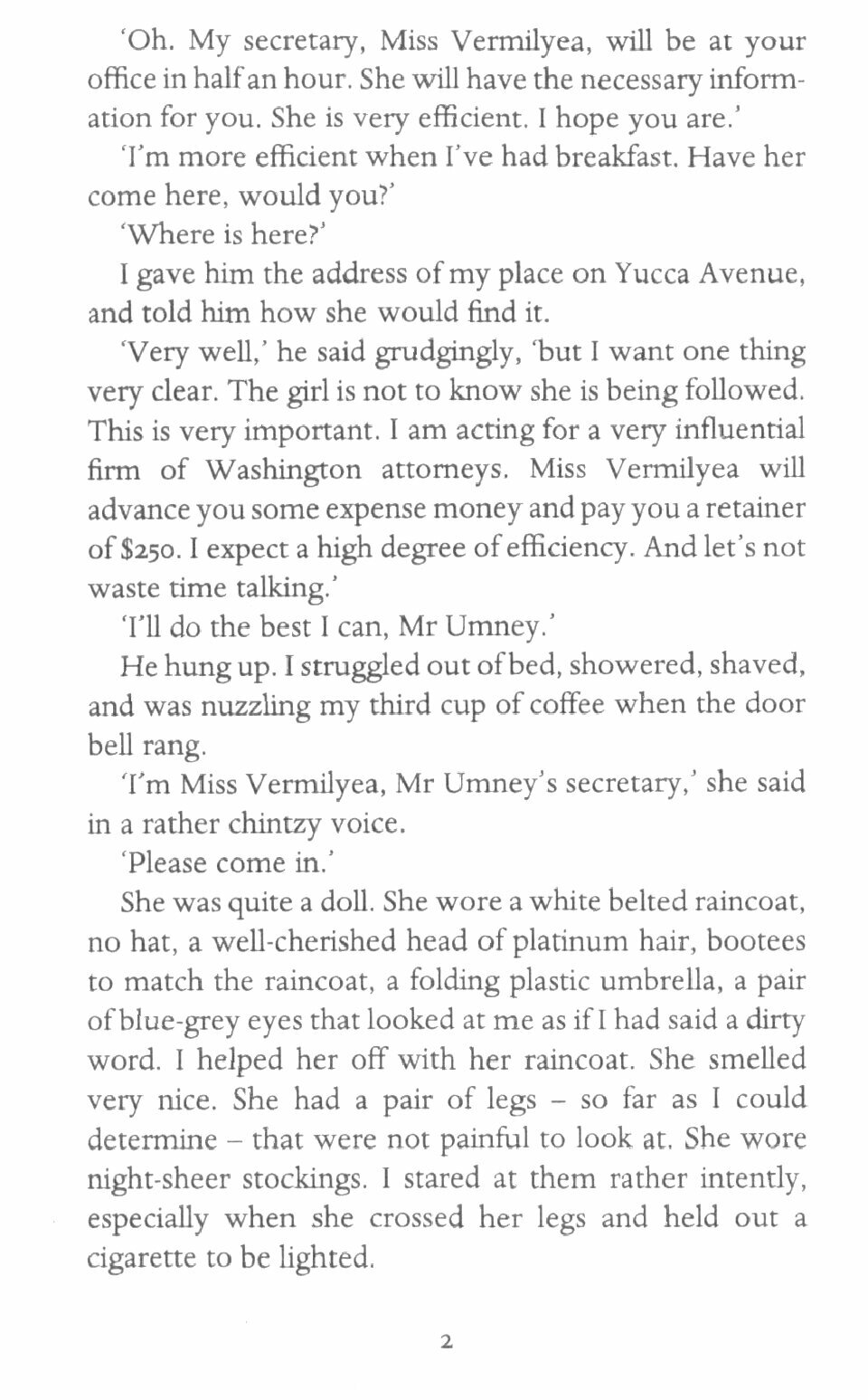 Los Angeles PI Philip Marlowe is mixing business with pleasure - he's getting paid to follow a lovely mysterious redhead called Eleanor King. And wherever Miss King goes, trouble is sure to follow. But she's easy on the eye and Marlowe's happy to do as he's told. But one dead body later and what started out as a lazy afternoon's snooping soon becomes a deadly cocktail of blackmail, lies, mistaken identity - and murder . . .