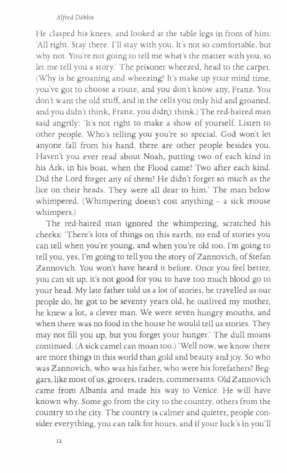 Franz Biberkopf is back on the streets of Berlin. Determined to go straight after a stint in prison, he finds himself thwarted by an unpredictable external agency that looks an awful lot like fate. Cheated, humiliated, thrown from a moving car; embroiled in an underworld of pimps, thugs, drunks and prostitutes, Franz picks himself up over and over again - until one day he is struck a monstrous blow which might just prove his final downfall.