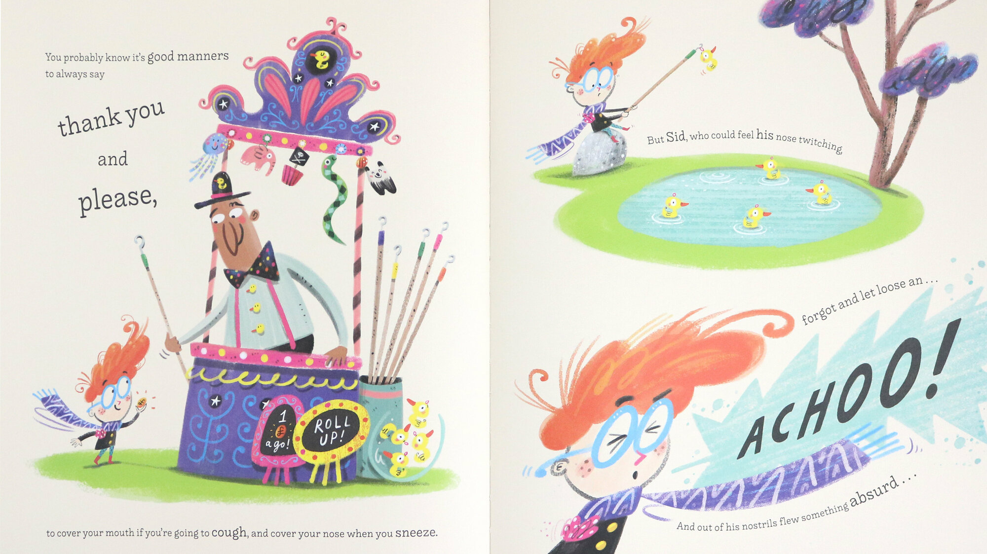 Get ready for a laugh-out-loud, sneeze-driven joyride, featuring elephants, pirates, acrobats, giants, princesses and a whole lot of pandas. Sneezing will never be the same again!
