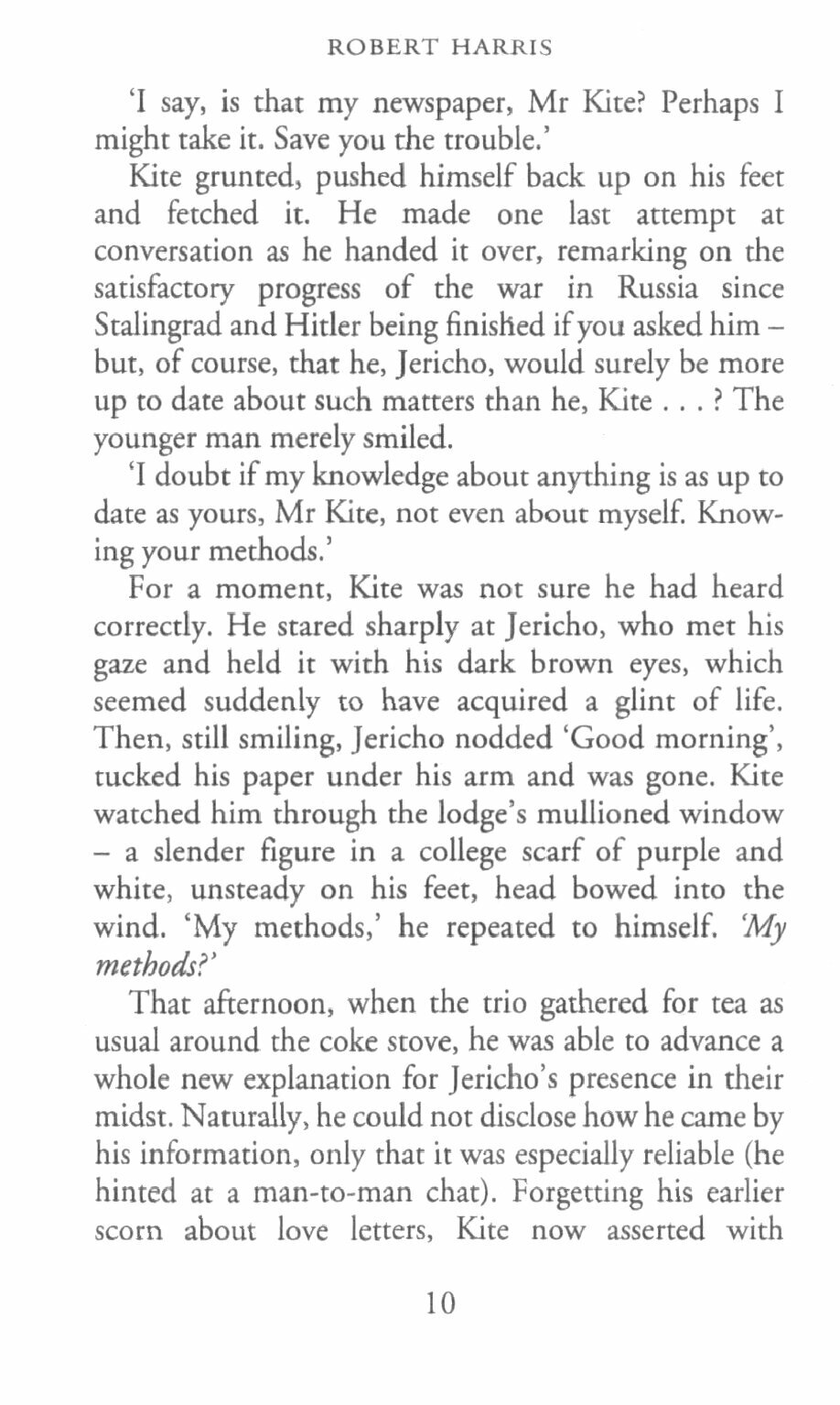 March 1943, the war hangs in the balance, and at Bletchley Park Tom Jericho, a brilliant young codebreaker, is facing a double nightmare. The Germans have unaccountably changed their U-boat Enigma code, threatening a massive Allied defeat. And as suspicion grows that there may be a spy inside Bletchley, Jericho's girlfriend, the beautiful and mysterious Claire Romilly, suddenly disappears.