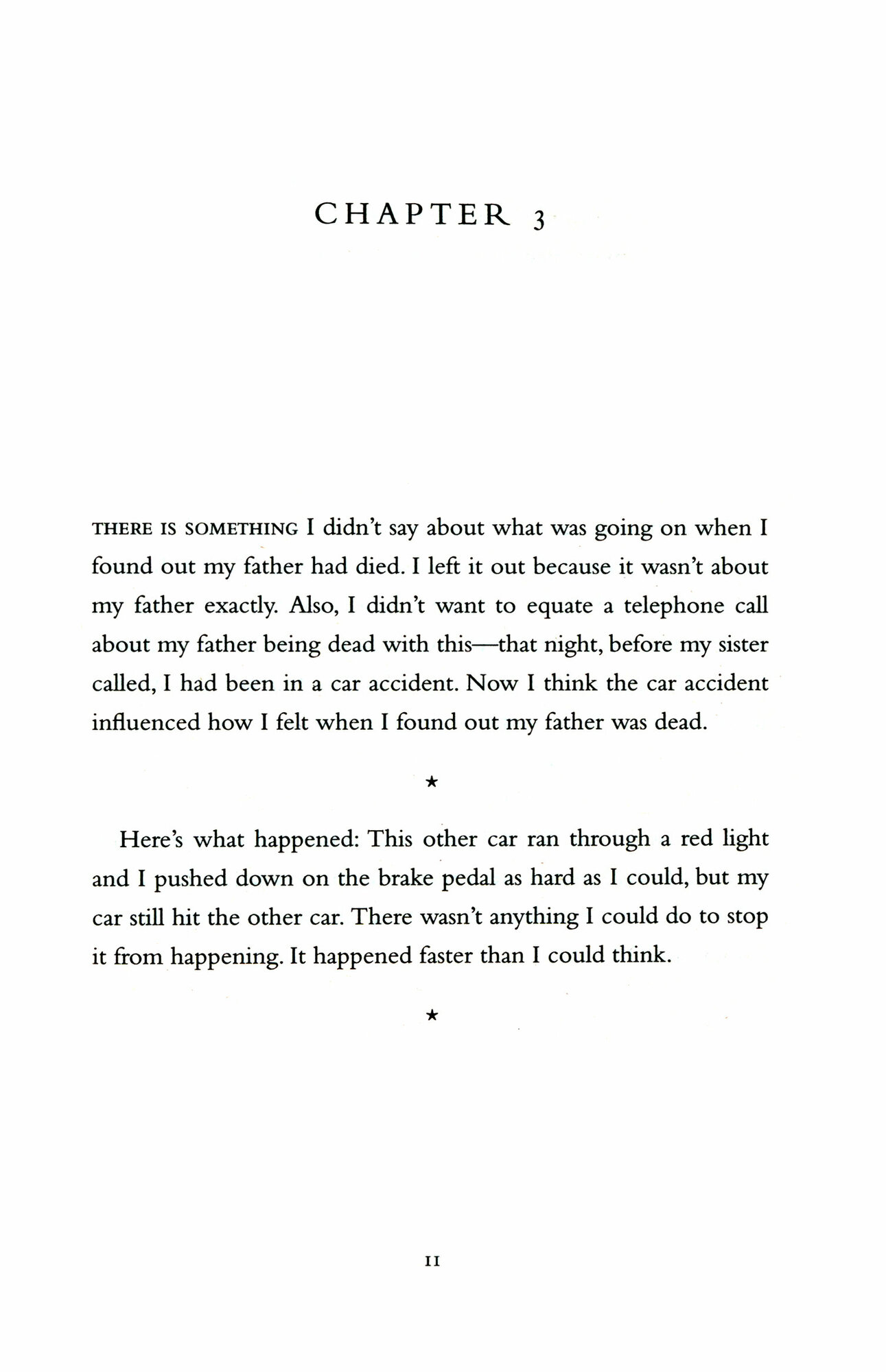 In this stunning novel a middle-aged man comes to terms with his father's death - and with his life. Told in five hundred brief entries, the complexity of this searing story moves back and forth between the past and the present, between an abusive childhood and an adult understanding.
