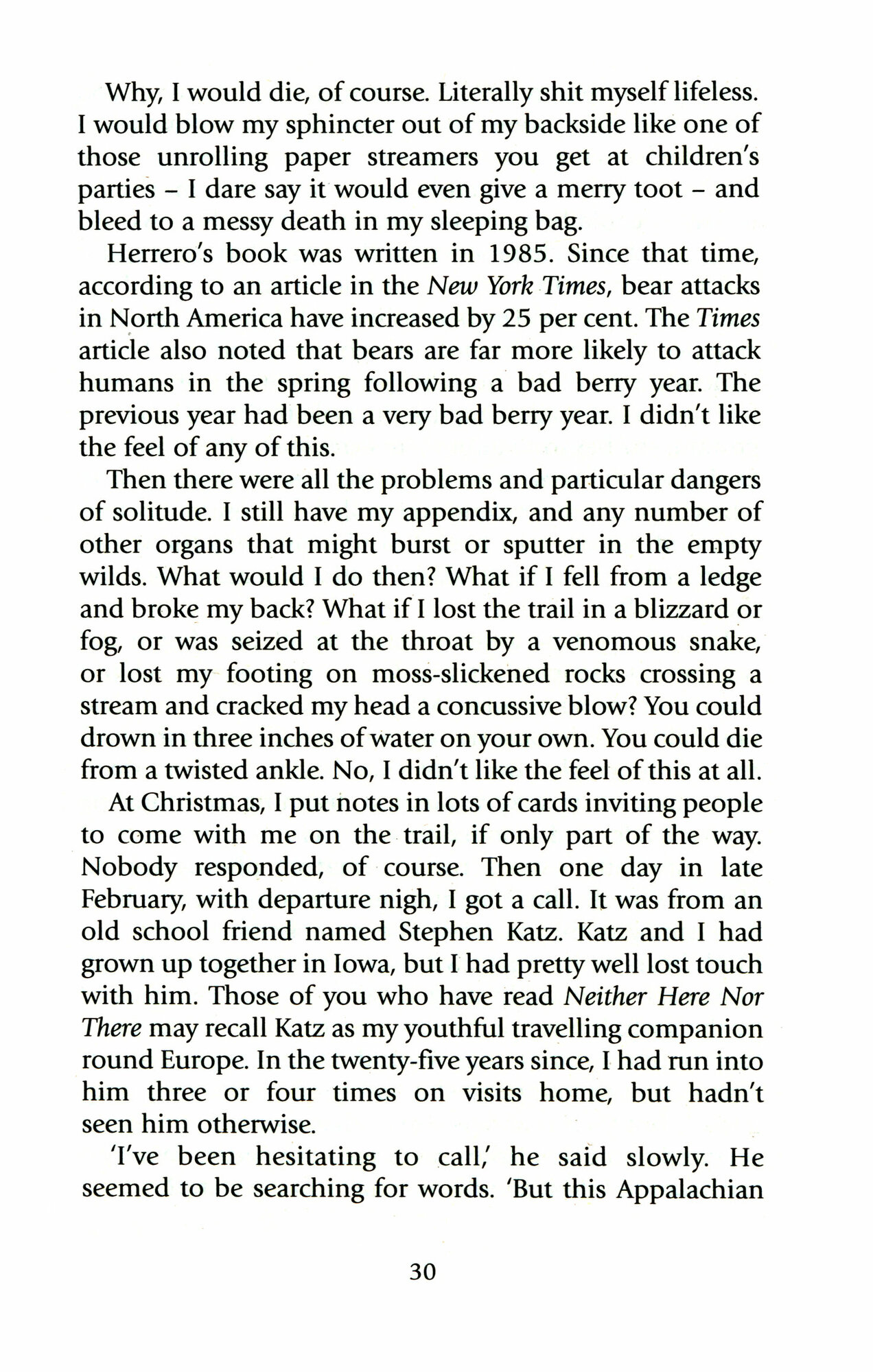 In the company of his friend Stephen Katz (last seen in the bestselling Neither Here nor There), Bill Bryson set off to hike the Appalachian Trail, the longest continuous footpath in the world.