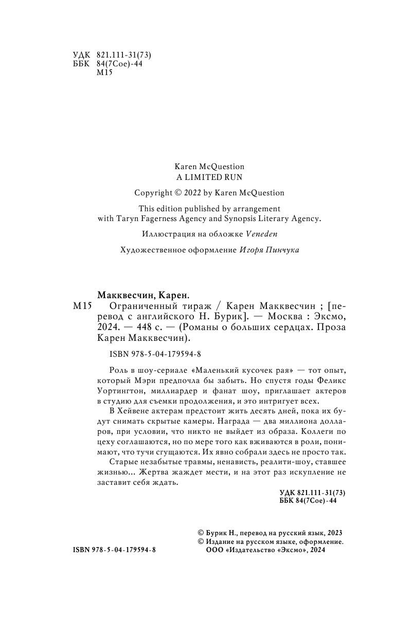 Книга: Ограниченный тираж (Макквесчин Карен); ООО "Издательство "Эксмо", 2023