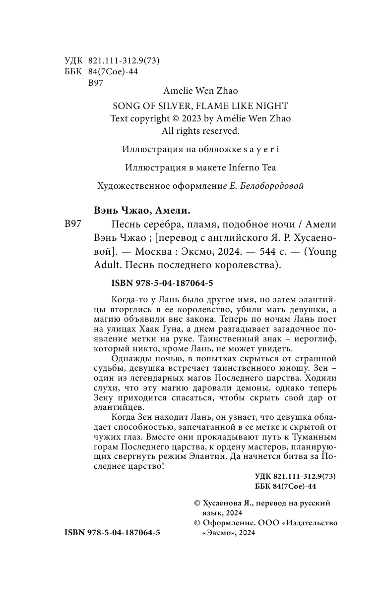 Песнь серебра пламя подобное ночи (Вэнь Чжао Амели); ООО "Издательство "Эксмо", 2023