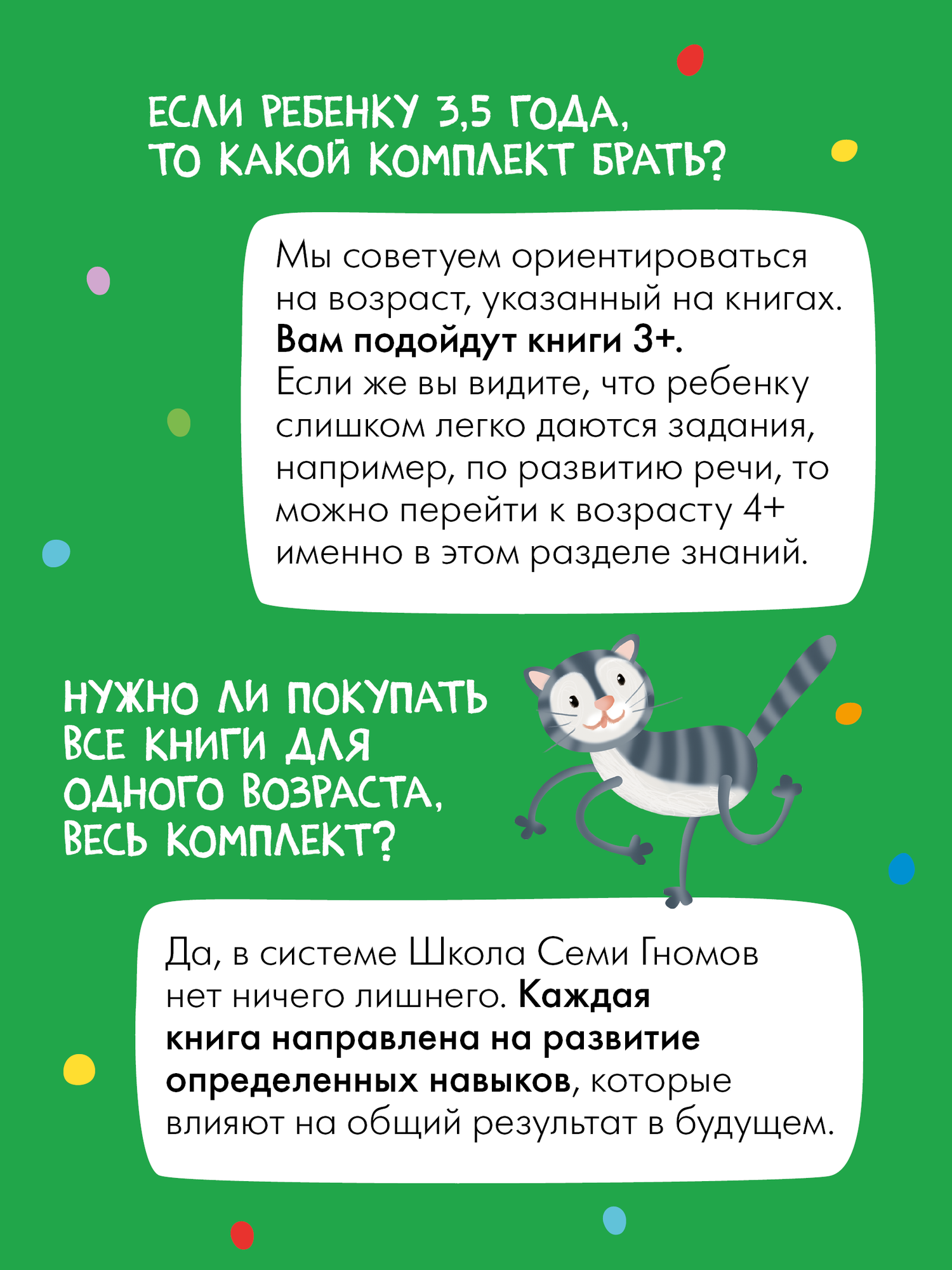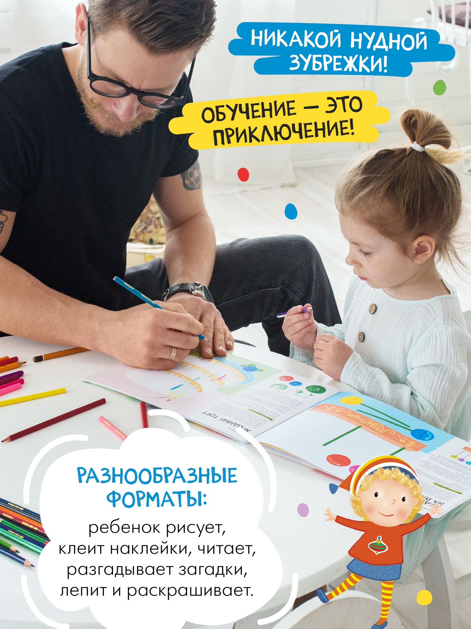 Все задания в книгах выстроены от простого к сложному и следуют принципу «развитие через игру». Заниматься с ребенком может любой взрослый, специальных знаний и опыта не требуется. Родительская страничка в каждой книге подскажет, что, как и почему нужно развивать в данном возрасте.
