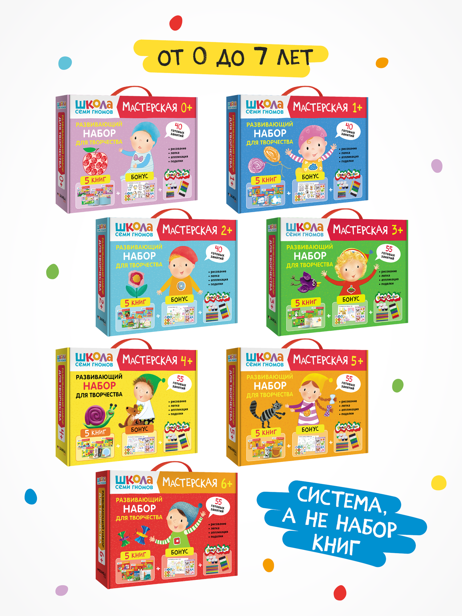 Школа Семи Гномов. Мастерская. Развивающий набор для творчества (5 книг+бонус) (Денисова Дарья Андреевна); МОЗАИКА kids, 2023
