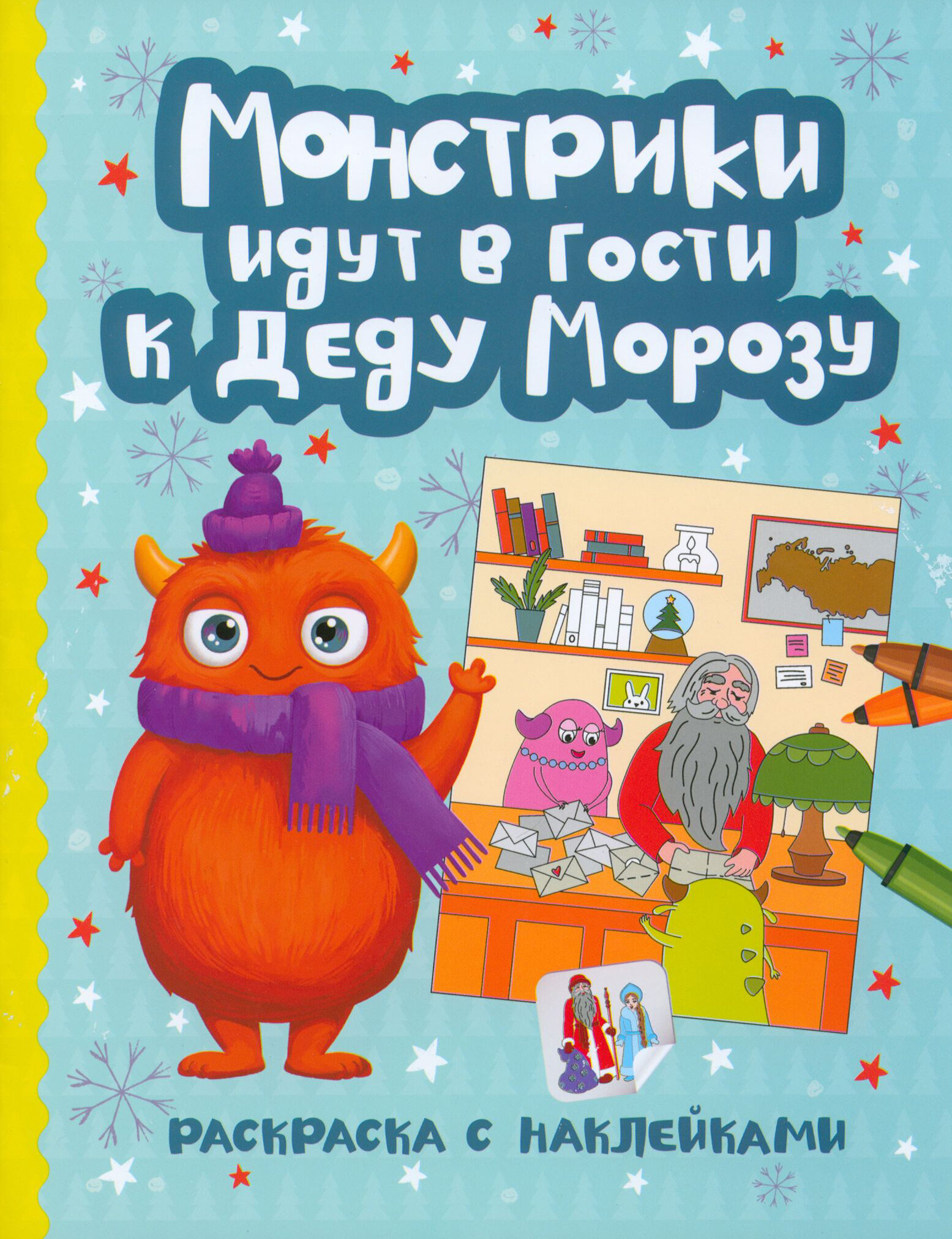 Монстрики идут в гости к Деду Морозу: книжка-раскраска с наклейками (Фокина Елена (иллюстратор)); Феникс, 2024