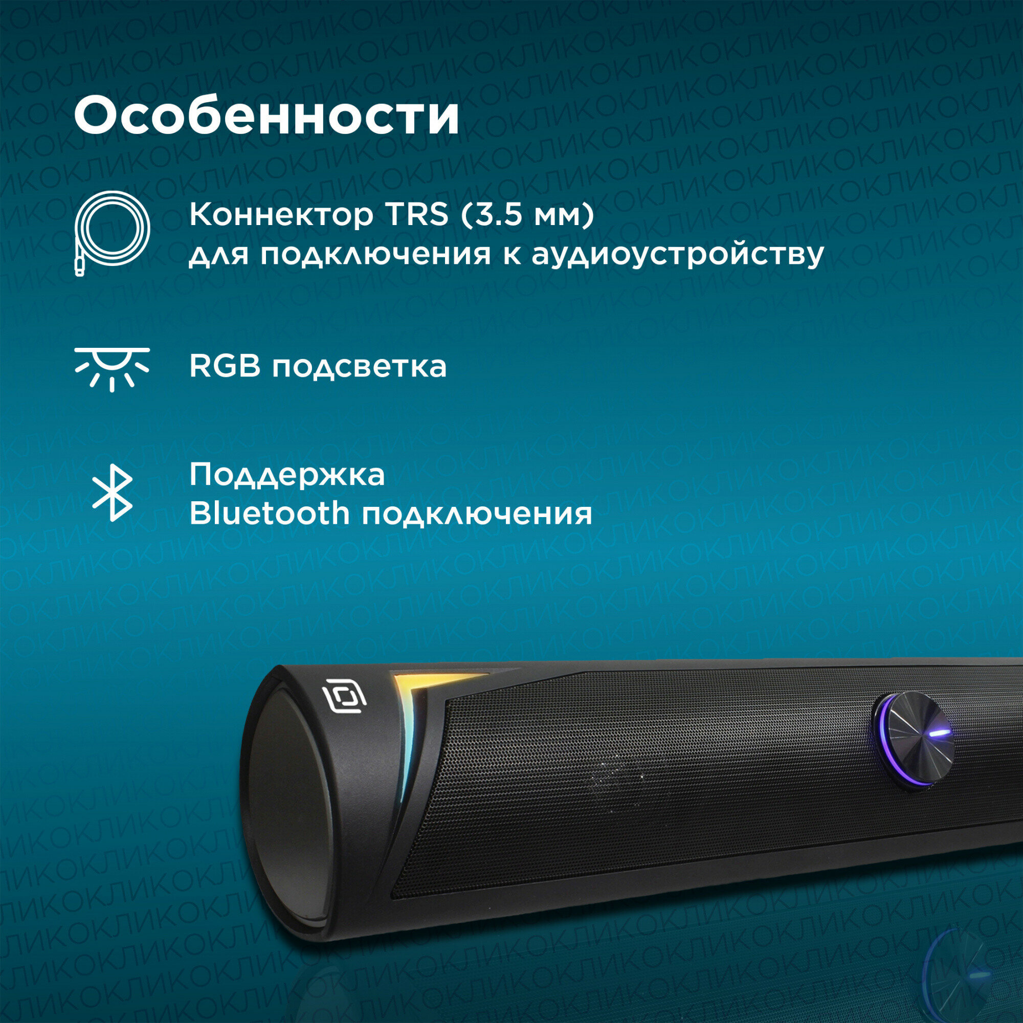| Особенности | регулировка громкости и RGB-подсветки. Подключение 3,5 мм + Bluetooth. Питание от порта USB типа A |