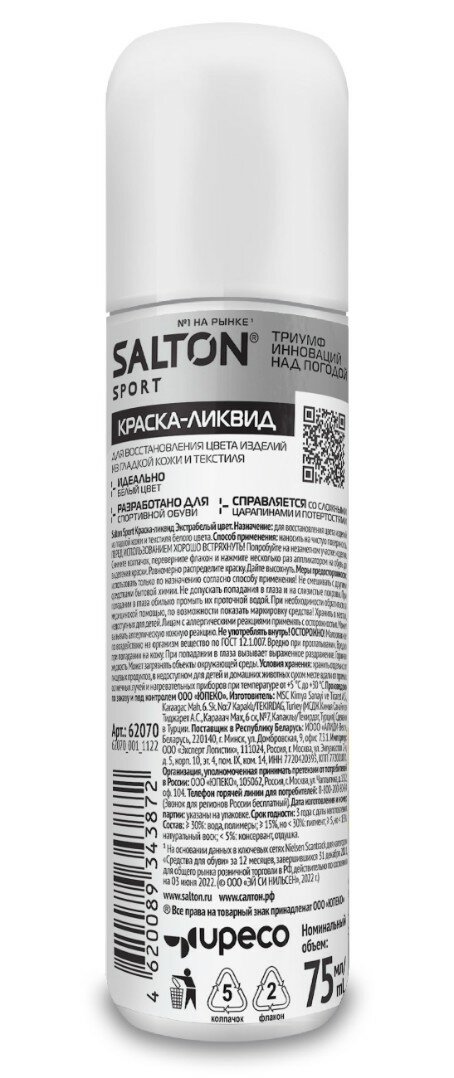 На сегодняшний день товар «Краска-ликвид для черной обуви Salton Sport 75 мл» можно купить с кешбеком в 3 магазинах: Ашан, ГЛОБУС, Яндекс.Маркет