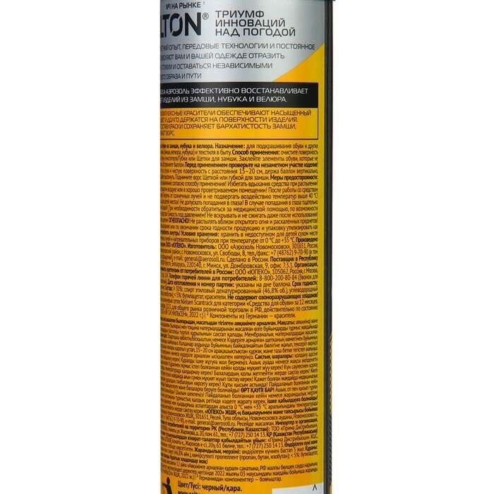 Восстанавливает цвет обуви, одежды и аксессуаров из замши, велюра и нубука