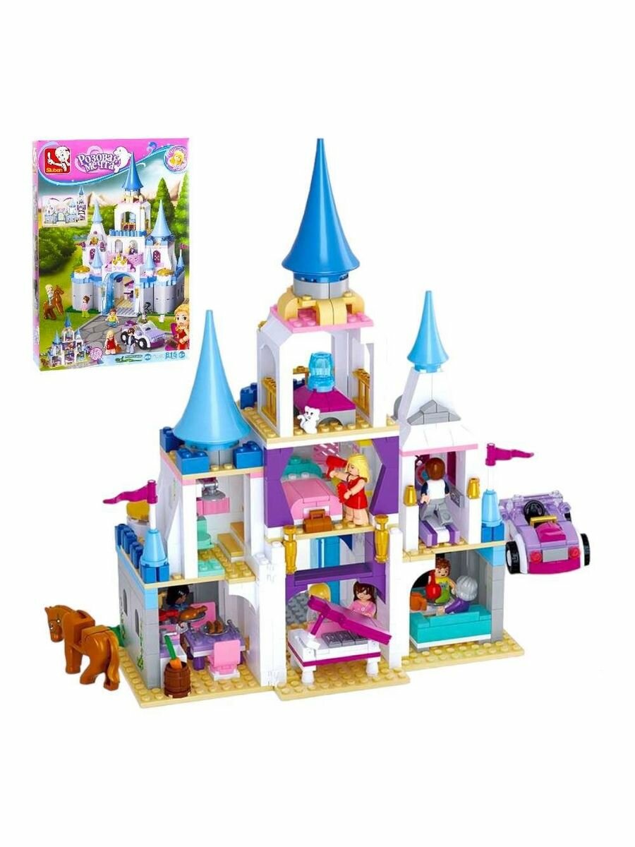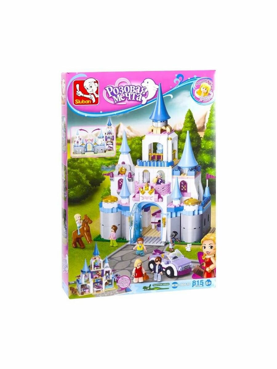В Сапфировом замке Sluban игрушечные жители наслаждаются жизнью. Конная прогулка, игра на фортепиано, пробежка или домашние заботы какое занятие для них выберешь ты?Замок имеет несколько этажей.Внутри расположились отдельные комнаты.В зависимости от обстановки, комнаты служат спортзалом, гостиной, ванной, кафетерием и т.д.Фигурки героев с подвижными деталями.Персонажи могут взаимодействовать с предметами из комплекта.Конструктор из 815 деталей сложная и интересная задача. Справиться с ней поможет инструкция по сборке.Создай игрушечный город, собрав все комплекты из серии Розовая мечта!