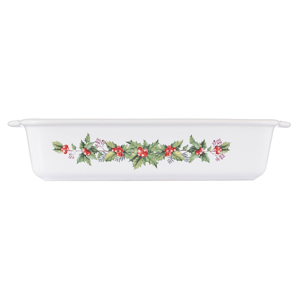 Форма имеет роскошный внешний вид: на белый фон нанесен Рождественский узор, что делает ее ярким украшением кухни и сервировки праздничного стола. В ней можно нарезать и подавать готовое блюдо прямо на стол, что очень удобно.