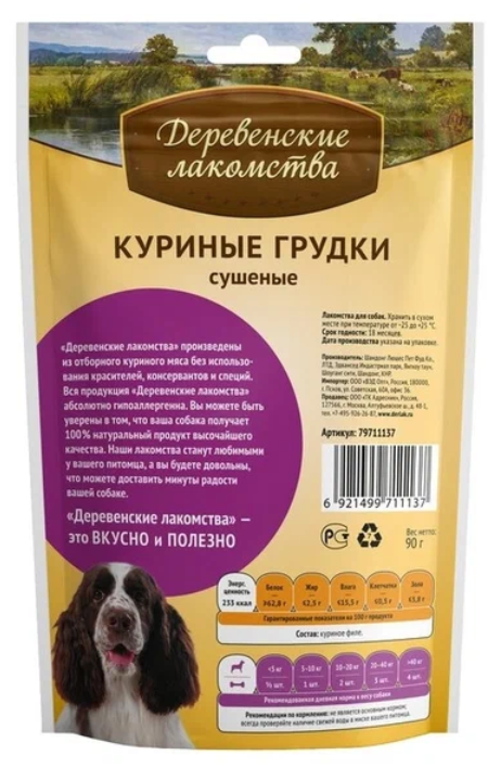 Деревенские лакомства для собак куриные грудки сушеные 100 гр