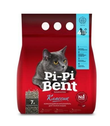Наполнитель комкующийся для кошачьих туалетов Pi-Pi-Bent Классик - натуральный наполнитель, изготовленный из бентонитовой глины, впитывает большое количество влаги, образуя крепкие комки.