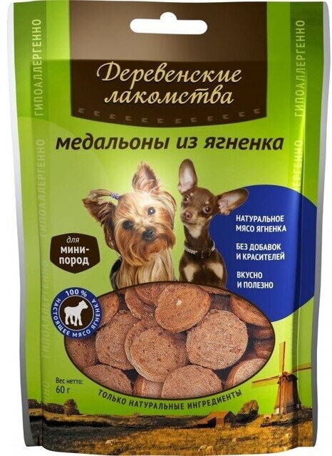 Деревенские лакомства для собак мини-пород медальоны из ягненка 60 гр