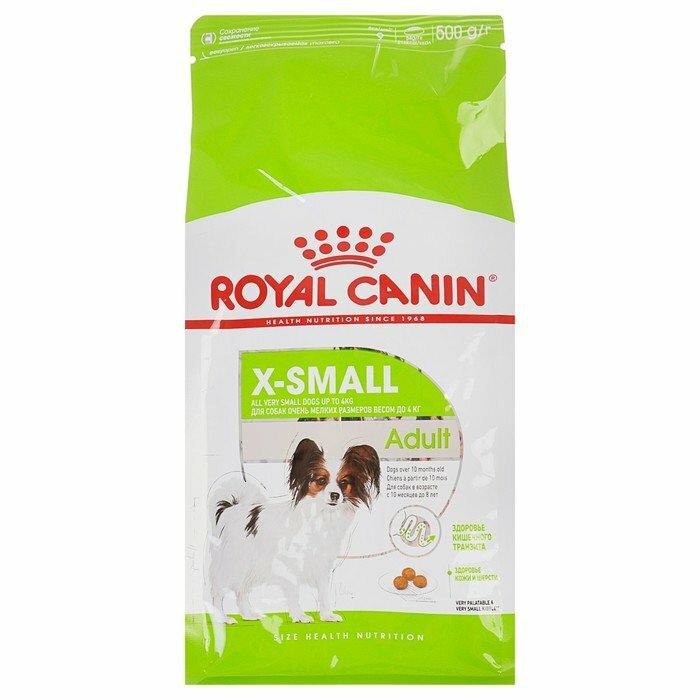 Корм сухой полнорационный для взрослых собак (старше 10 месяцев) очень мелких размеров (весом до 4 кг) X-SMALL ADULT (ИКС-СМОЛ ЭДАЛТ) ROYAL CANIN®, подходящий для собак миниатюрных пород в возрасте от 10 месяцев до 8 лет, специально разработан с учетом потребностей вашей собаки в питательных веществах.