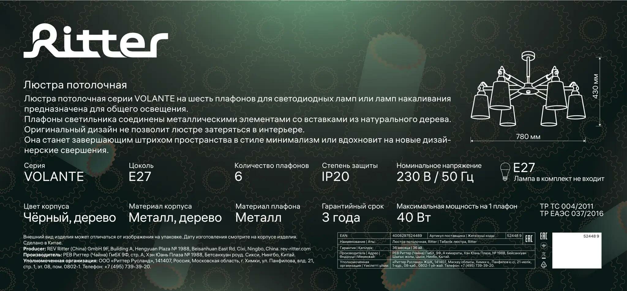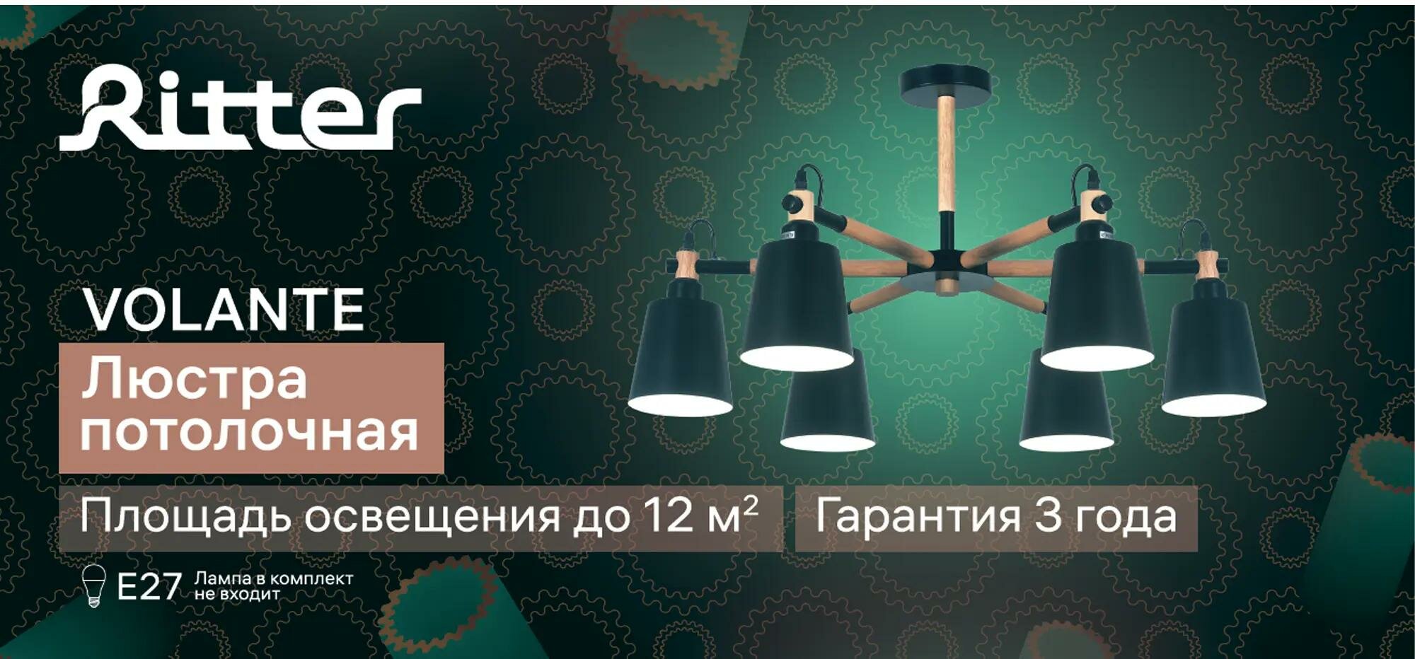 На сегодняшний день товар «Люстра потолочная Ritter Volante 524489 6 ламп цвет черное дерево» можно купить с кешбеком в 1 магазине: Яндекс.Маркет