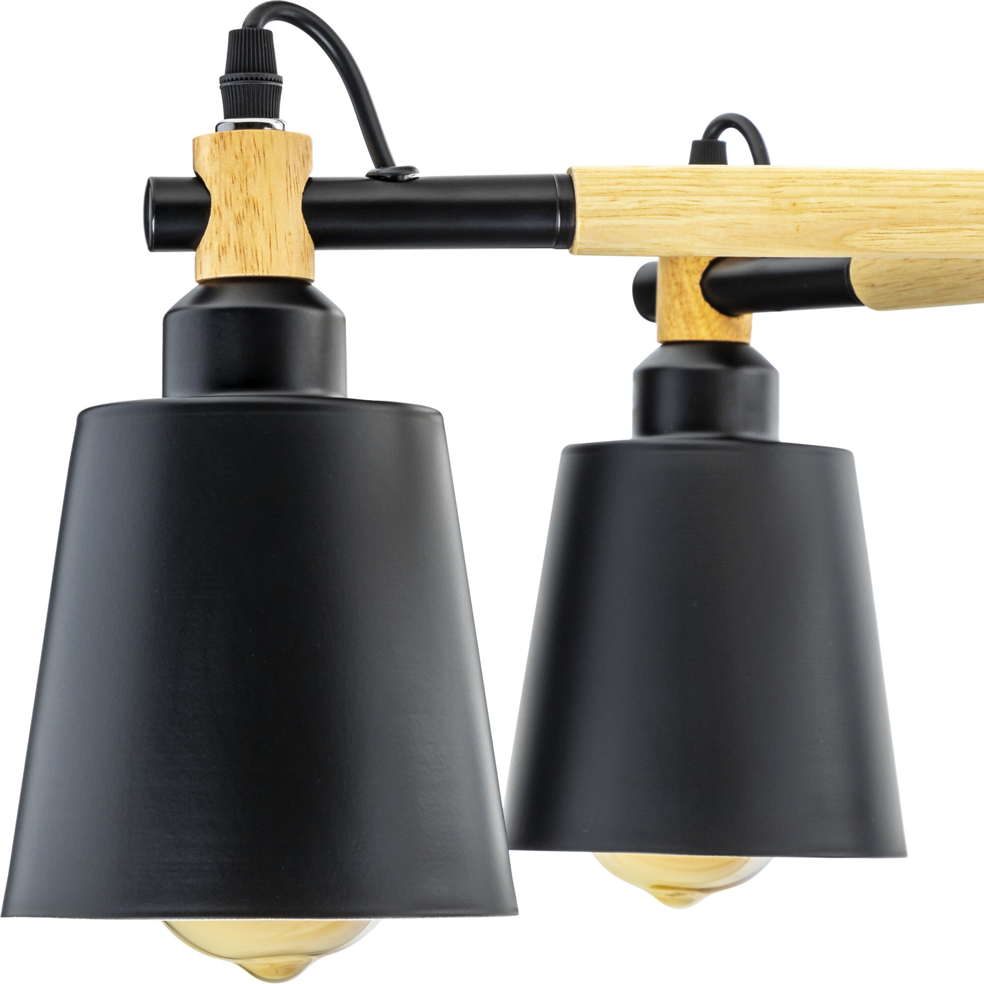 **Люстра потолочная «Volante» 524489** предназначена для организации основного источника освещения в помещениях площадью до 16 м². Крепится к потолку на планку. Выполнена в лаконичном дизайне, актуальна для помещений в современных стилях: гранж, арт-деко, лофт, прованс и другие. Подходит для установки на низкие и натяжные потолки. Основание и каркас изготовлены из металла с декоративным покрытием, визуально напоминающим фактуру натурального дерева. Черные трапециевидные плафоны направлены источником света вниз.