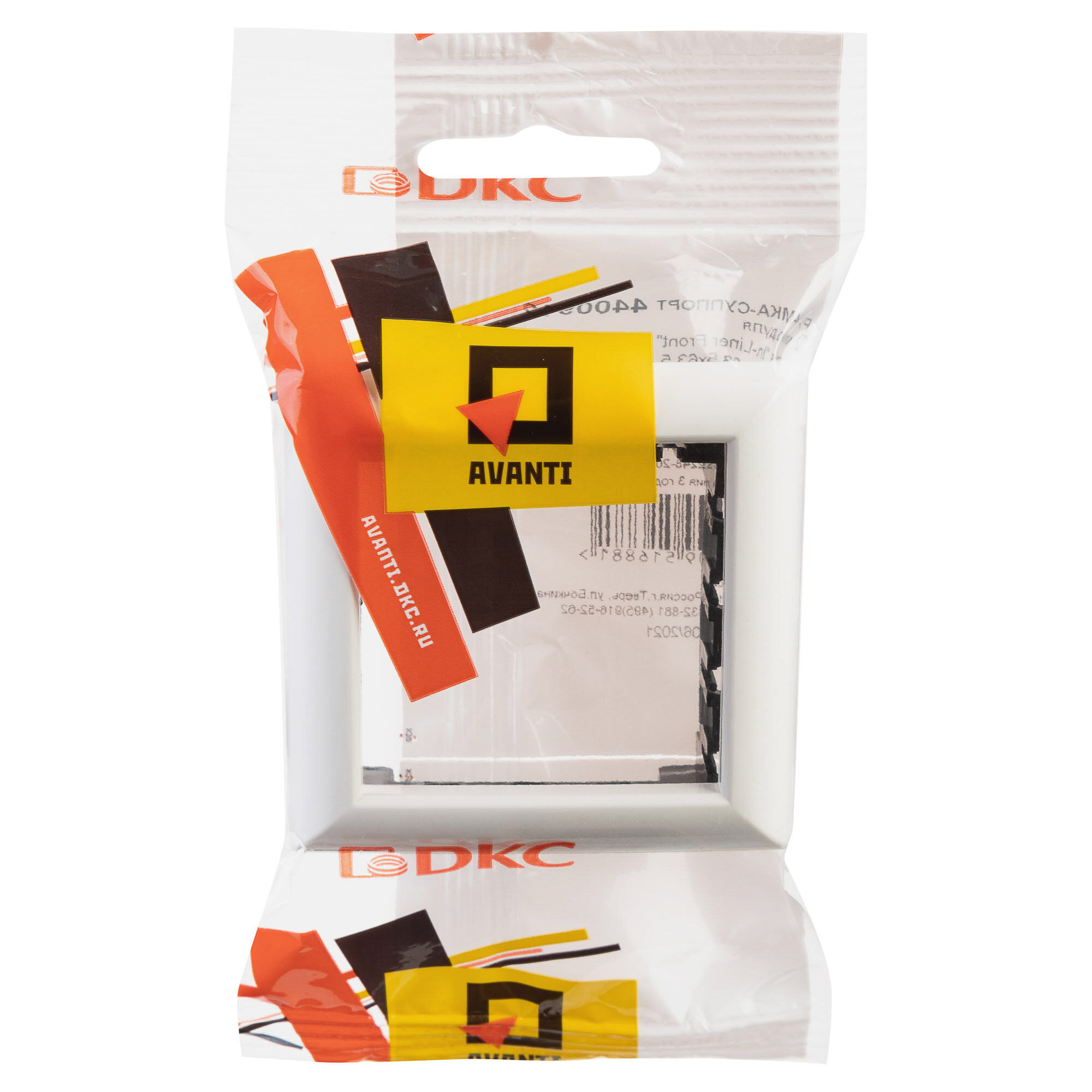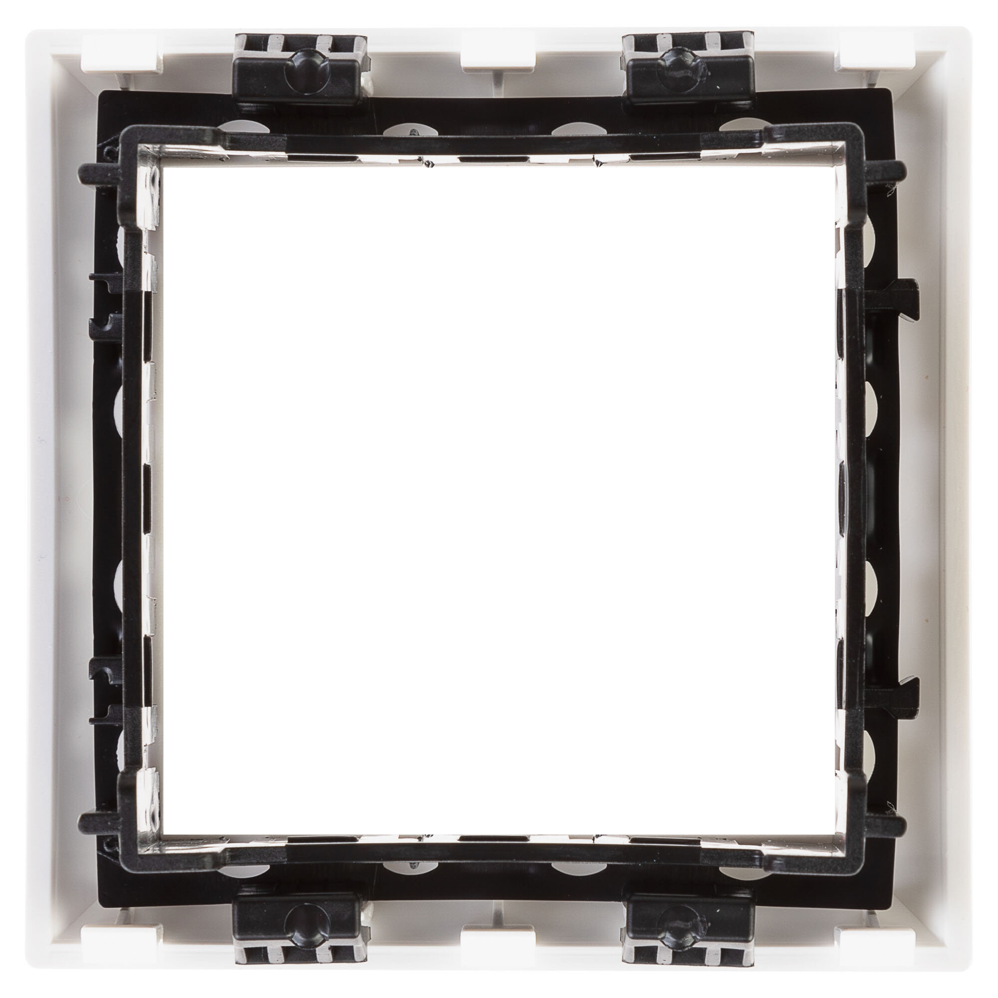 ** Рамка-суппорт DKC Avanti** белого цвета, выполнена из пластика, рассчитана на 2 модуля. Предназначена для монтажа в колонны, кабель-каналов, башенок и лючков. Выполнены из АБС-пластика — это материал с высоким уровнем огнестойкости. Размеры рамки — 63,5 мм х 63,5 мм, глубина — 7 мм.