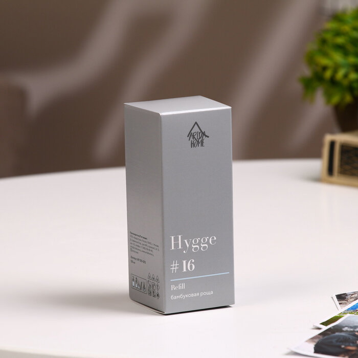 **Наполнитель Arida Home Hygge 16** предназначен для наполнения ароматического диффузора. Его используют в жилых, офисных и хозяйственных помещениях для создания приятного запаха. Аромат позволит снять напряжение, расслабиться после тяжелого дня, создаст особую атмосферу в помещении. Он надежно купирует и нейтрализует неприятные запахи. Наполнитель поставляется в бутылочке с плотно завинчивающейся крышкой, которая предотвращает его случайное проливание. Следует избегать попадания вещества на кожу во избежание аллергических реакций.